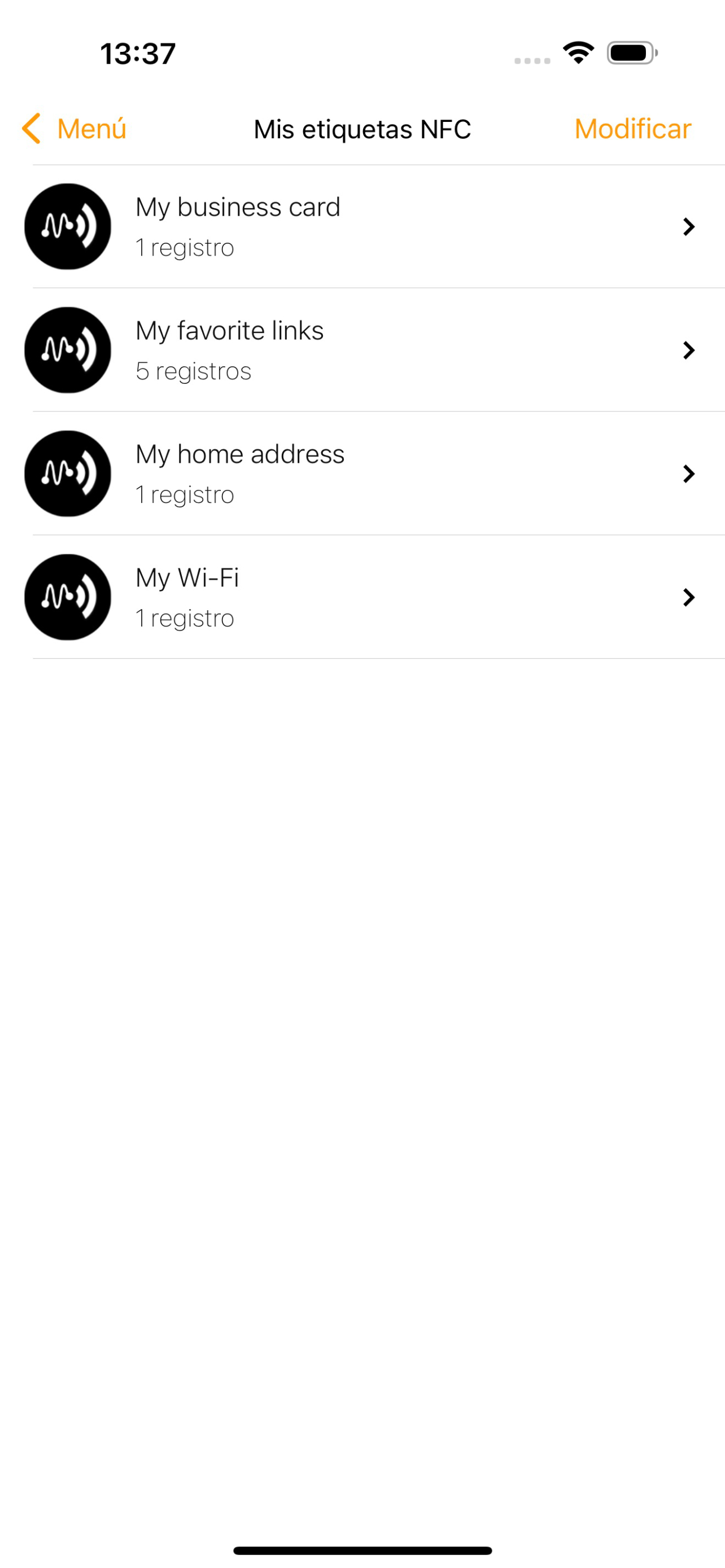 NFC Tools ha sido probada con las etiquetas NFC siguientes :
