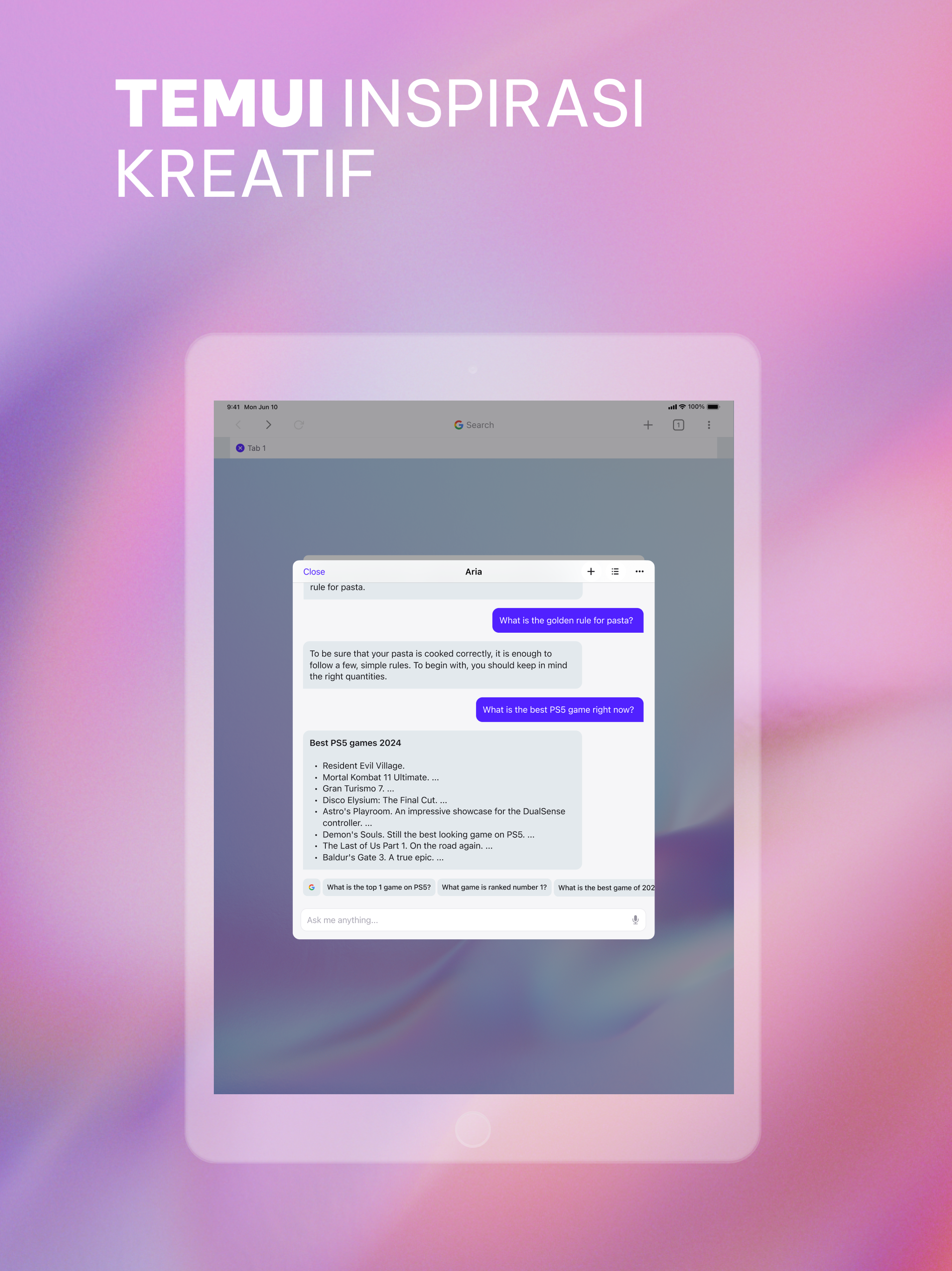 Whenever i type something to Aria even something simple like a "hi", i keeps loading forever showing the three dots.