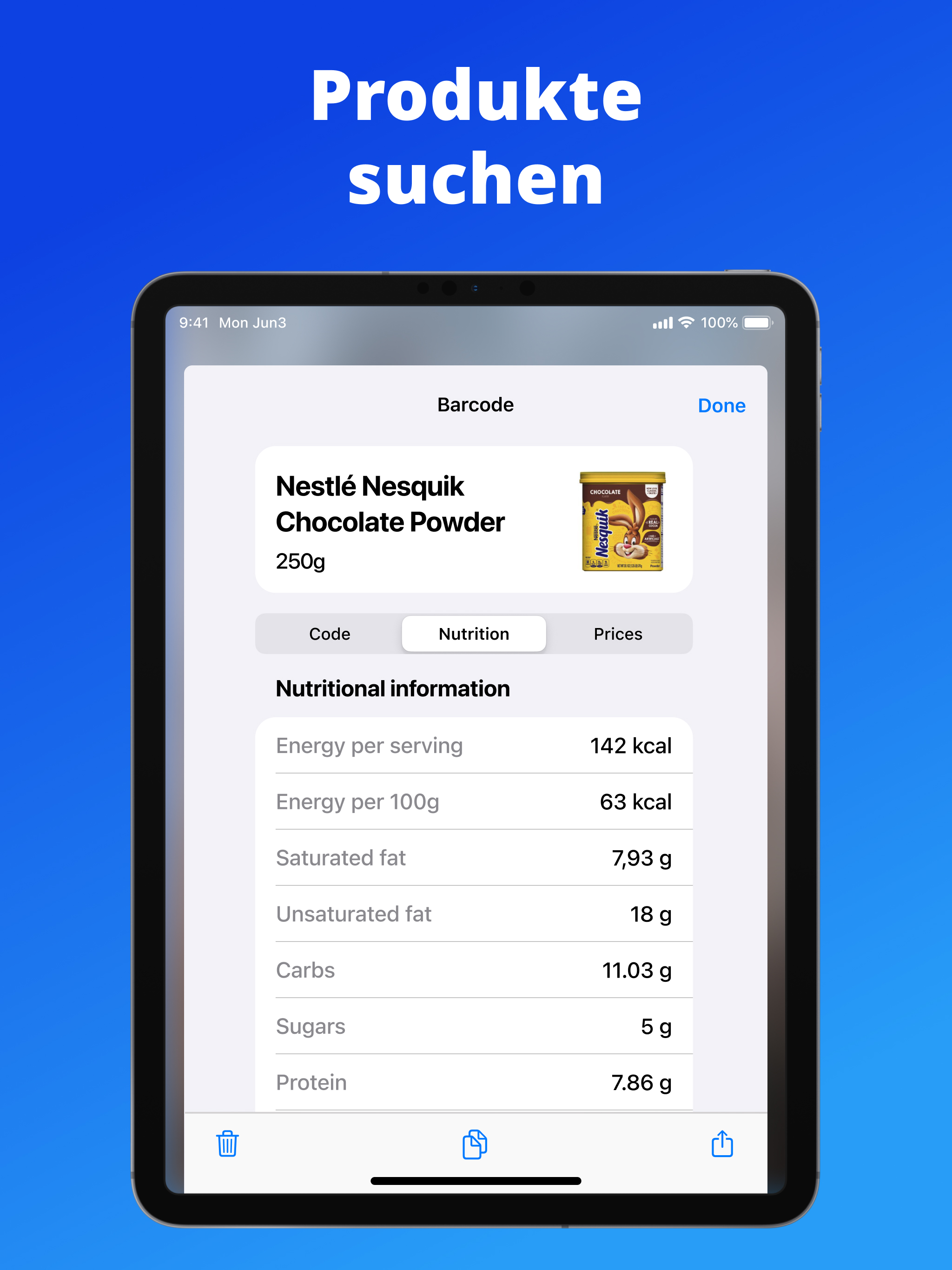 Scannen Sie Barcodes, um Nährwertinformationen, Produktdetails und Preise zu erhalten. Verfolgen Sie Artikel in Ihrer Speisekammer oder Ihrem Haushalt mit einfachen Inventarwerkzeugen
