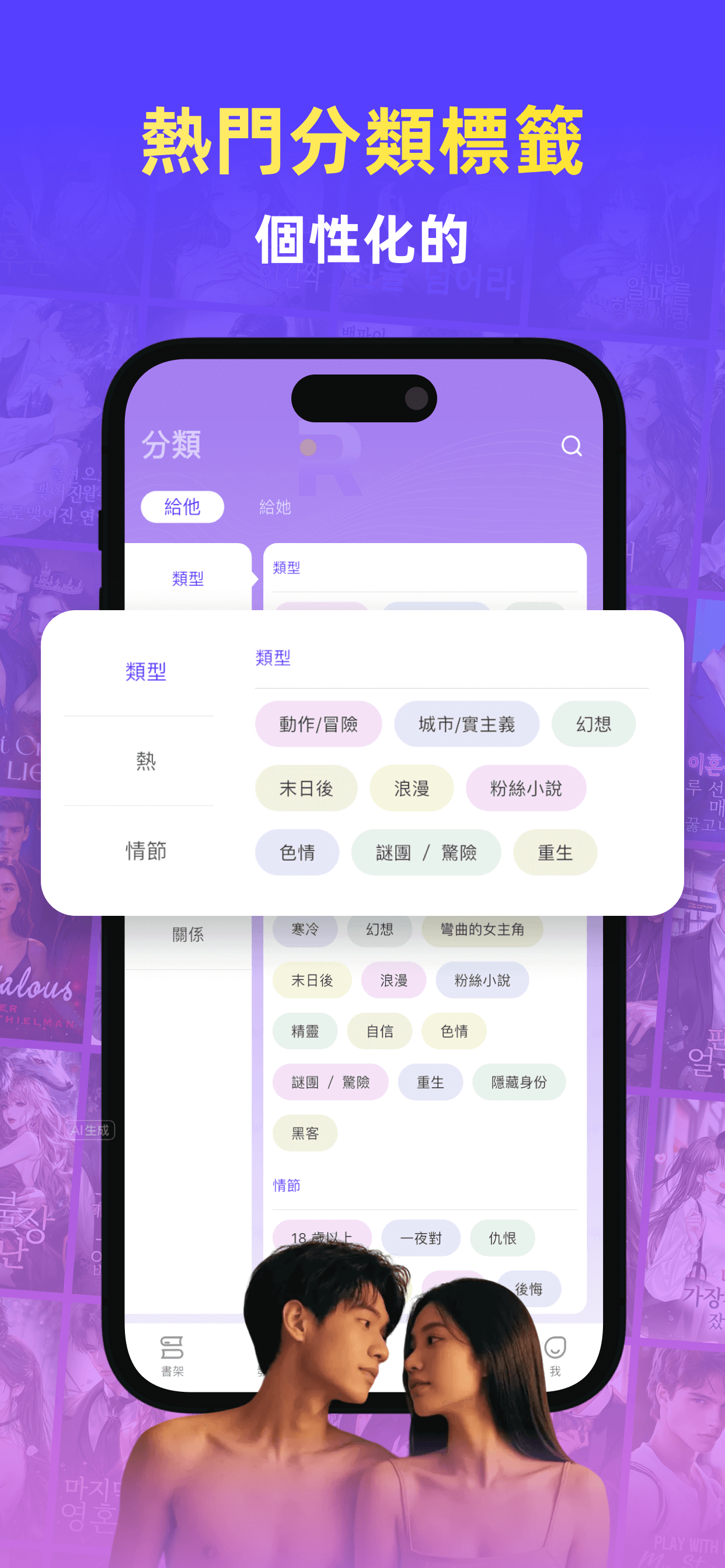 - 有多種小說類型可供閱讀。用它們來個性化您自己的閱讀風格!