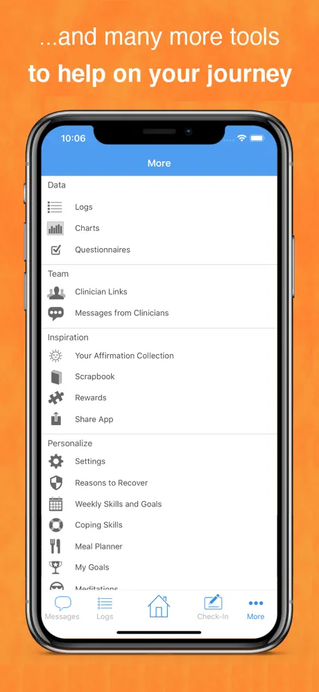 - Customize log questions, meal plans, coping tactics and recovery goals