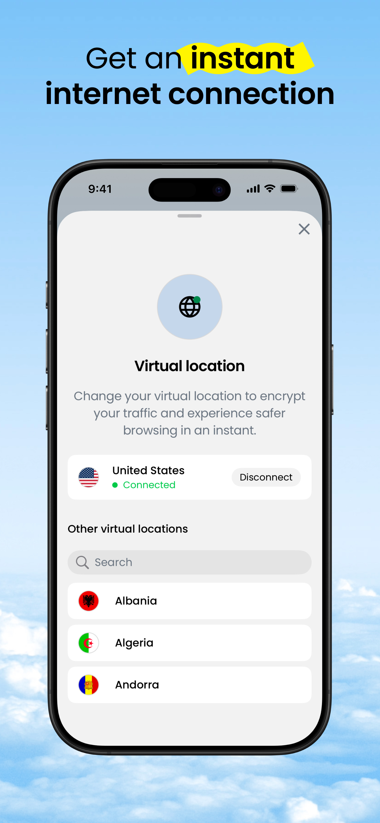 • Change your virtual location to encrypt your traffic and experience safer browsing in an instant.