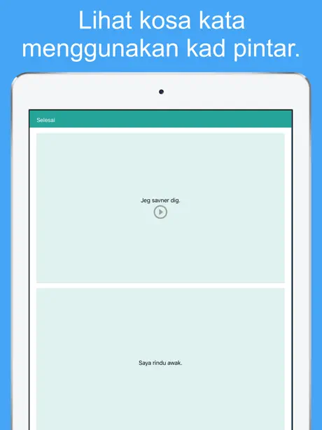 Belajar perbendaharaan kata dengan Kad Kilat menggunakan teknik ulangan.