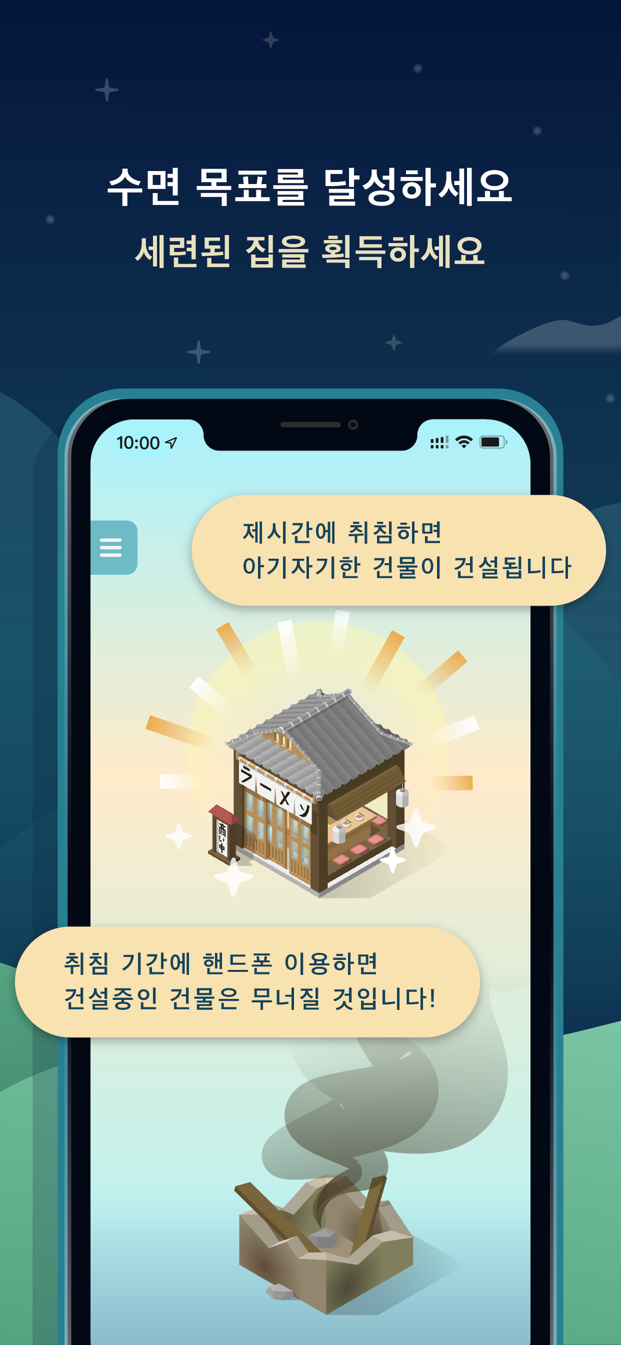 집이랑 오락시설 지어놨는데 사람들이 이용하는 모습을 보면 더 좋을 것 같아용.. 그리고 소셜 서클의 취침 목표를 바꿀 수 있었으면 좋갰어요. 잘 쓰고 있는 앱입니다.