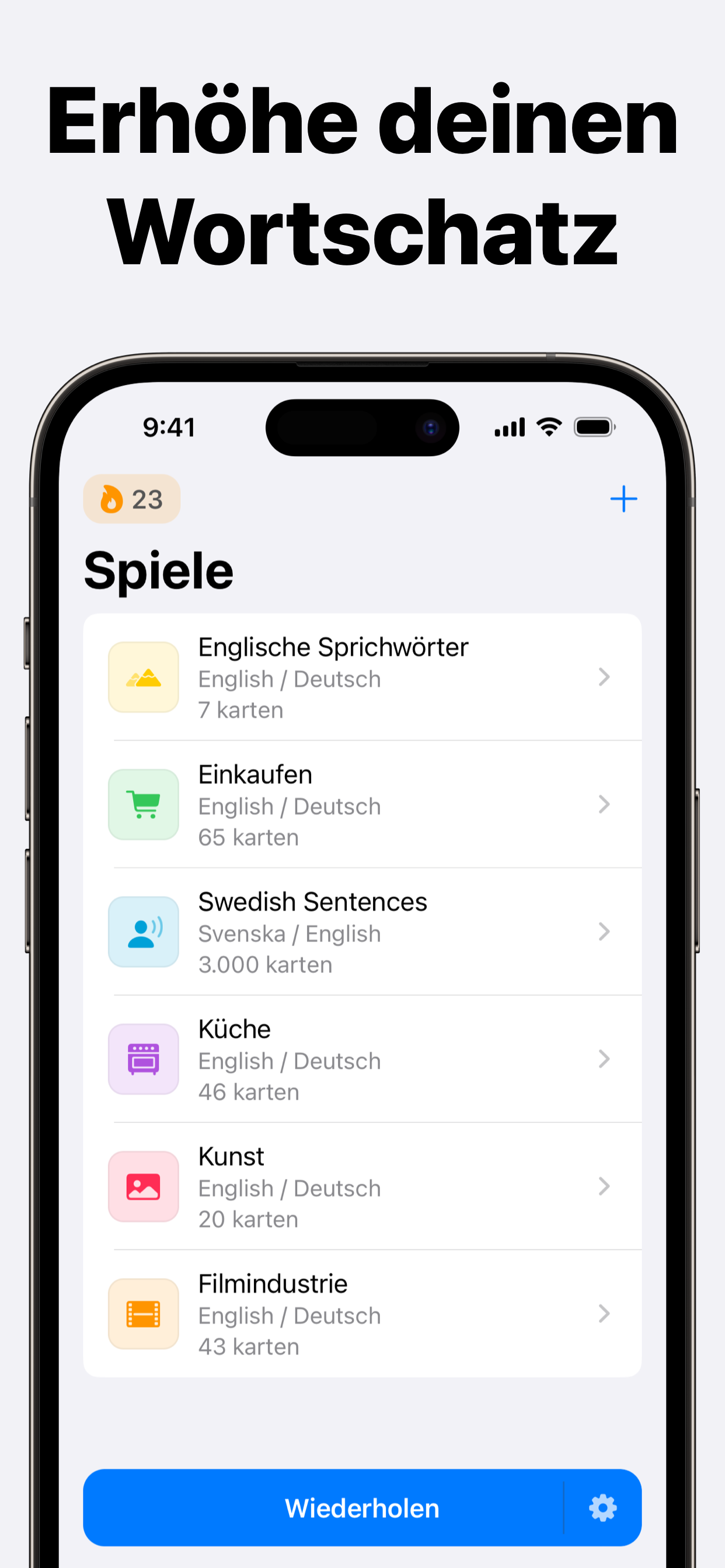 • Merken Sie sich bis zu 3650 Wörter pro Jahr, indem Sie nur 5 Minuten pro Tag lernen