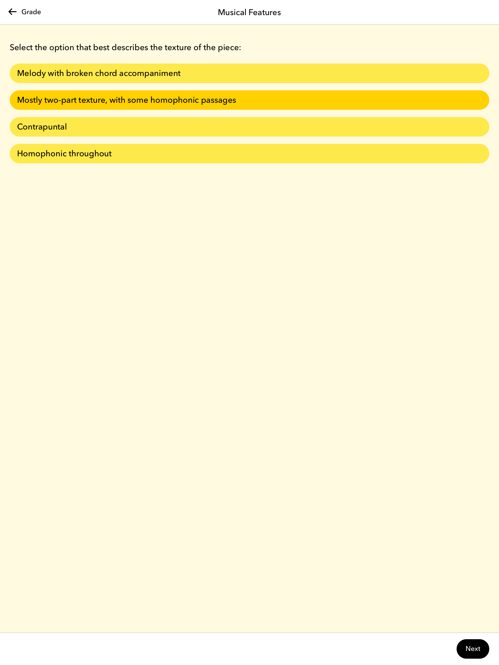 I am a mature student using the app to revise for my grade 7 piano exam; generally it is helpful but there are a number of glitches, particularly in the Cadence and Musical Features section. The same piece kept being repeated in the Cadence section while the app has a tendency to quit halfway through the Musical Features section. As others have said, for such a pricey app, this is not great. I would also agree with the reviewer who complained that answers are marked wrong when they were partly correct eg. 2 out of 3 features were correctly identified.