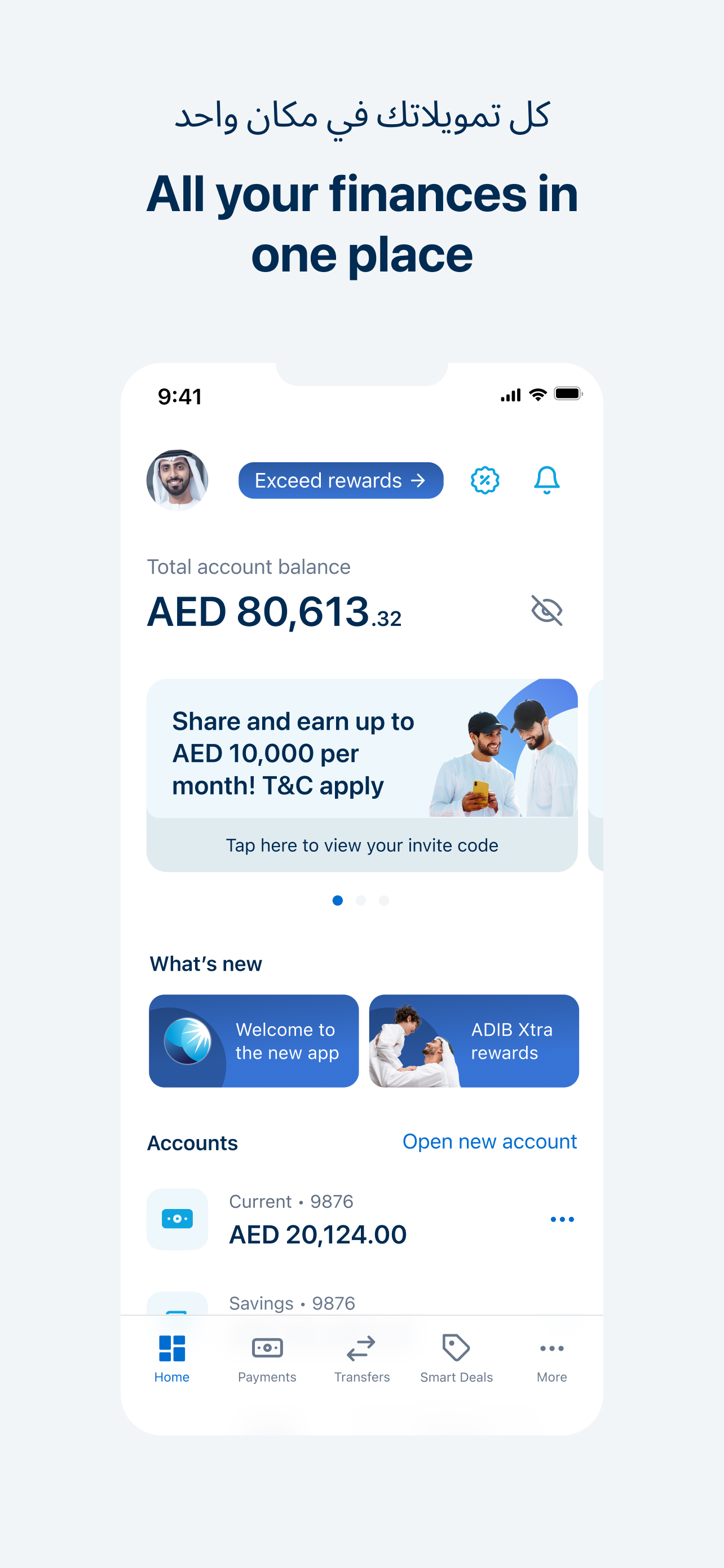 The ADIB Mobile Banking app gives you the freedom to manage your money on the go. View all your accounts at a glance, pay your bills, send money to your family & friends, pay your bills, recharge your phone & Salik credit, apply for financing and much more!