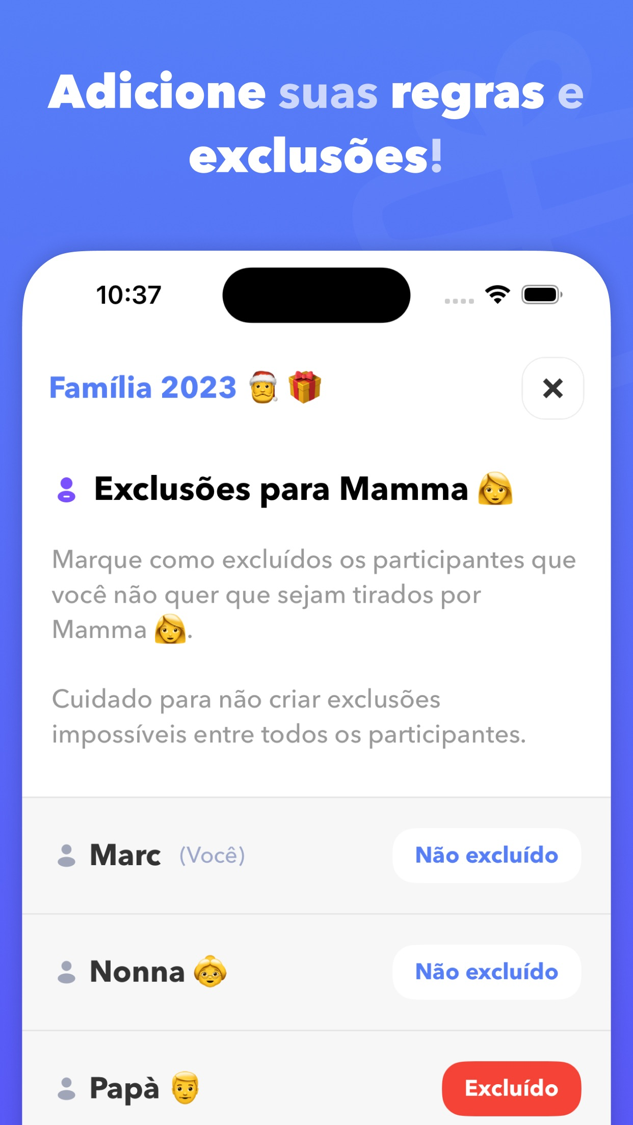 Foi fácil fazer, incluir os nomes e sortear. A única coisa que ficou a desejar foi a possibilidade de encaminhar mensagem secreta para o seu amigo oculto