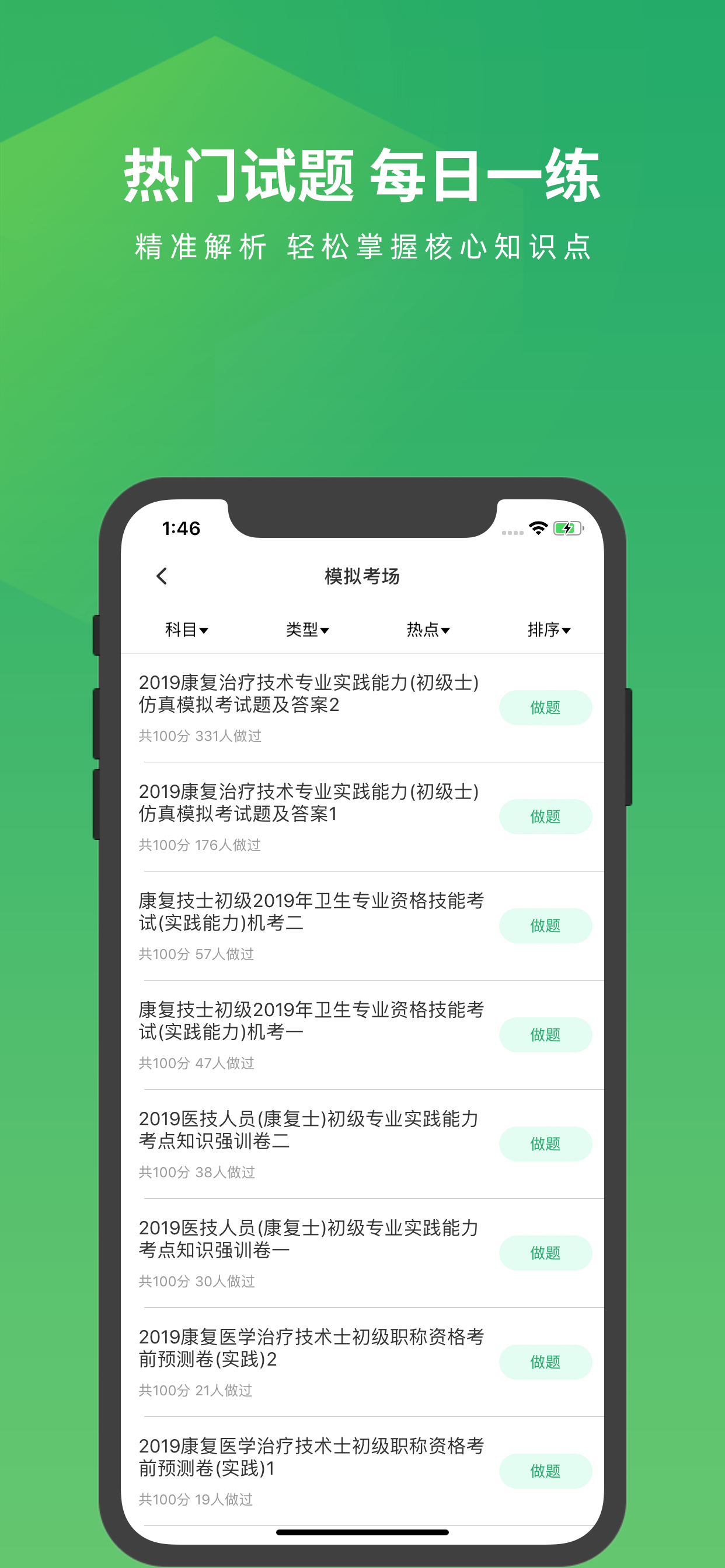 康复医学治疗技术考试题库 имеет несколько покупок/подписок внутри приложения, средняя цена покупки составляет ¥101.86.