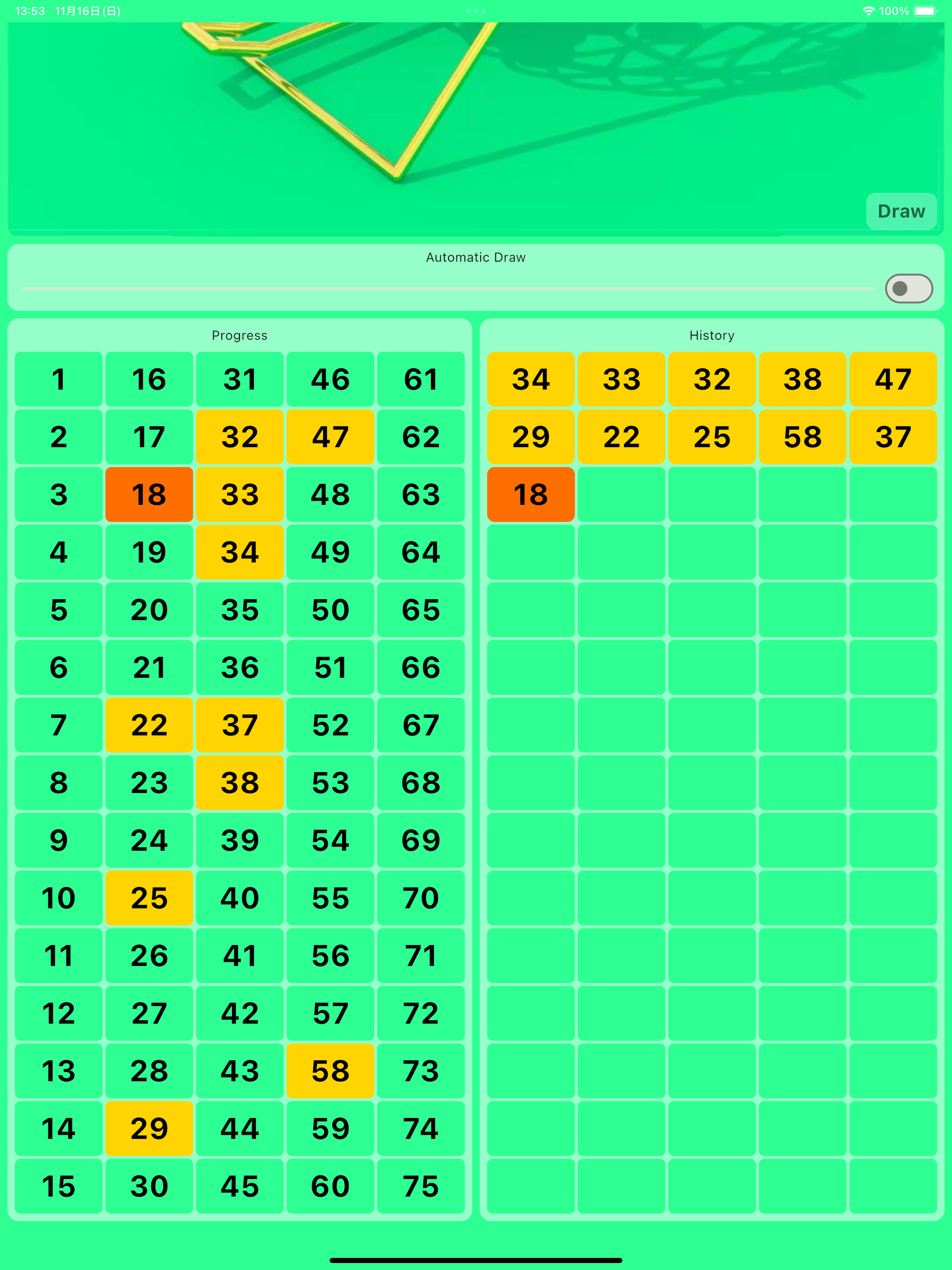 还会显示游戏进度和已取出数字的历史记录。