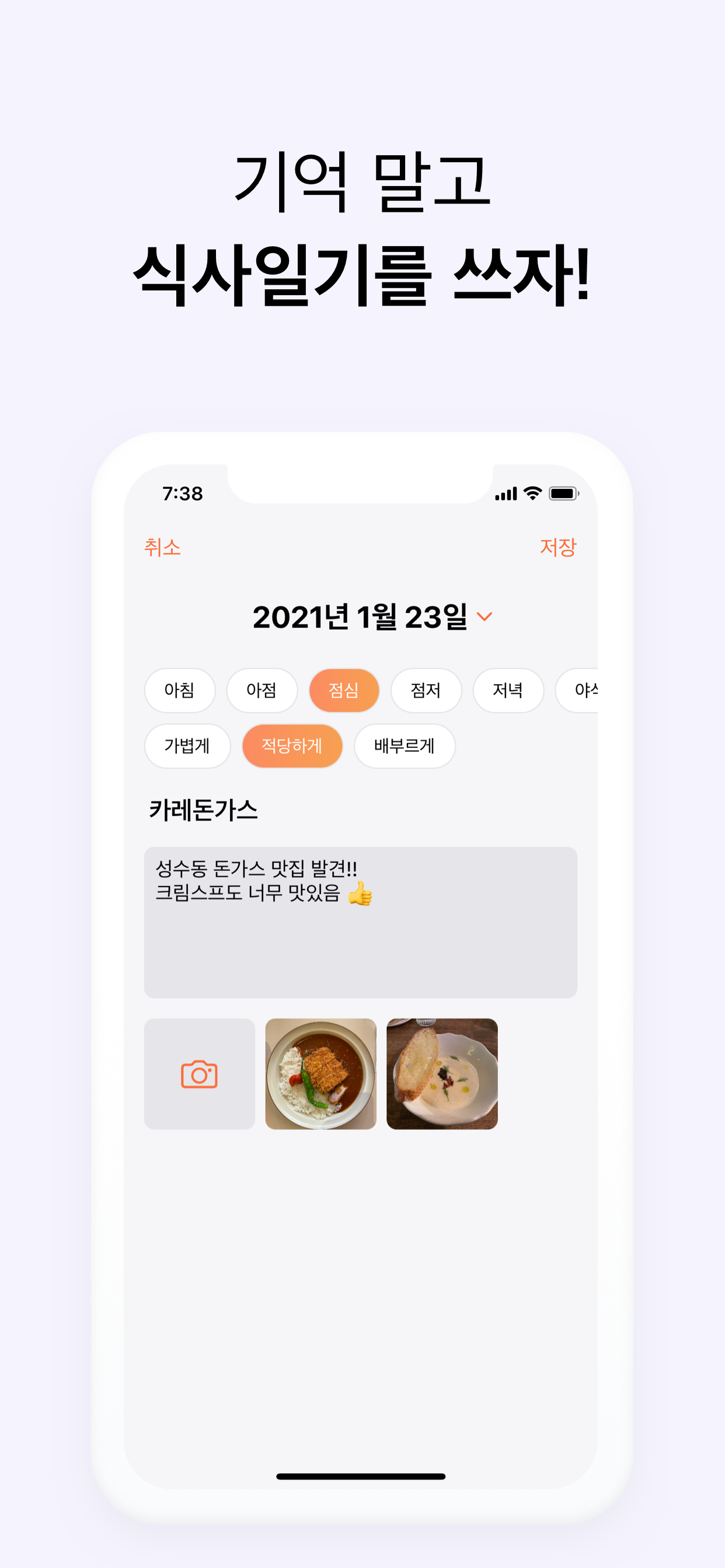 진짜 이거 너무 좋아요 우리나라 식단 어플 전부 무슨 다이어트랑 연관돼서 운동을 기록하라느니 몸무게를 기록하라느니 물을 기록하라느니 쓸데없는 게 많아서 기록할 때마다 짜증나는데 이건 진짜 내 위장관리를 위한 기록만 간단히 해서 너무 좋아요ㅠㅠ 개발자님 어떻게 이런 어플 만들 생각을 하셨는지..👏🏻😭 다이어트 식단 어플에 지친 사람들이여 오라!! 진짜 그런 보기 싫은 카테고리 없는 건 이 어플뿐이에요ㅠㅠ 그리고 적당하게 배부르게 과하게 라고 기록하는 거 진짜 제일 좋아요 제가 소화기능이 약해서 조금씩 꼭꼭 씹어서 먹어야하는데 어렵거든요ㅠㅠ 식사 메모도 맛은 어땠는지 구체적으로 무엇을 먹었는지 꼭꼭 씹어서 먹었는지 등을 기록하거나 자가 피드백 할 수 있어서 좋고 하루 기록에 사진은 작게 나오면서 음식 무엇을 먹었는지 적당히/과하게 먹었는지를 바로 볼 수 있어서 좋아요! 제가 얼마나 제 위장을 힘들게 하는지 아님 요즘은 적게 잘 먹었는지, 외식을 얼마나 했는지 집밥 잘 챙겨먹었는지, 일주일 동안 채소랑 영양분은 잘 섭취했는지 등을 통계랑 타임라인으로 볼 수 있어서 너무 좋슴다!! 진짜 딱 필요한 것만 있어서 너무너무 좋아요🥰 다만 날짜와 함께 먹은 시간도 기록할 수 있으면 좋겠어요 아님 타임스캠프처럼 음식사진 찍을 때 시간도 같이 기록되든가요. 제가 끼니를 제때에 잘 챙겨먹었는지도 보고 싶어서요 (꼭꼭 씹어먹었는지, 오래 먹었는지, 멀티 안 하고 식사에 집중했는지 그런 것도.. 아주아주 간단하게 체크할 수 있으면 좋겠지만 개발자님 힘드실까봐 괄호 안에 적어요..ㅎ) (시간기록만 있어도 100퍼 만족이에요) 정말 감사합니다😋