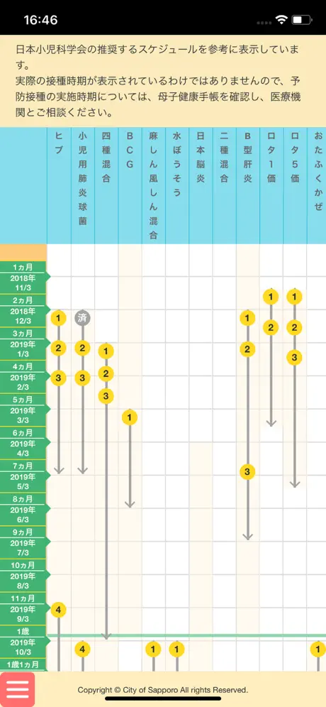⑥予防接種の種類と予定が分かる!