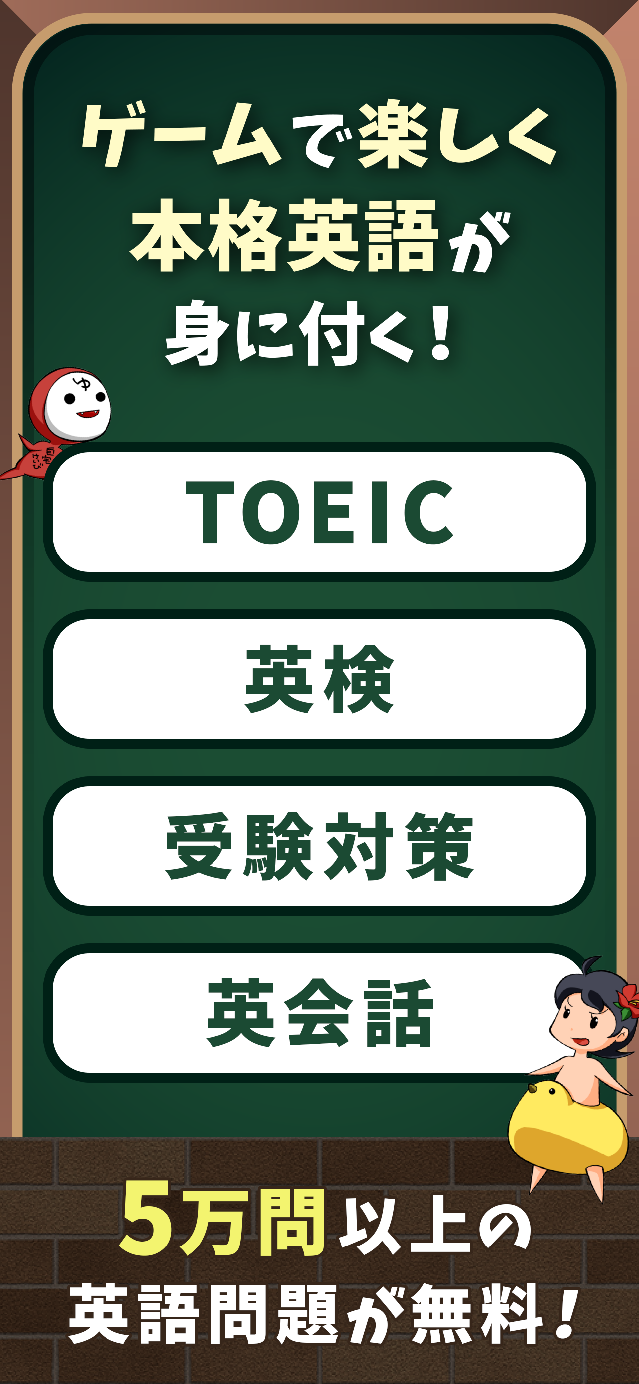 やってるだけで英語力が上がるし,キャラもたくさん種類があって面白いし何よりも楽しい!