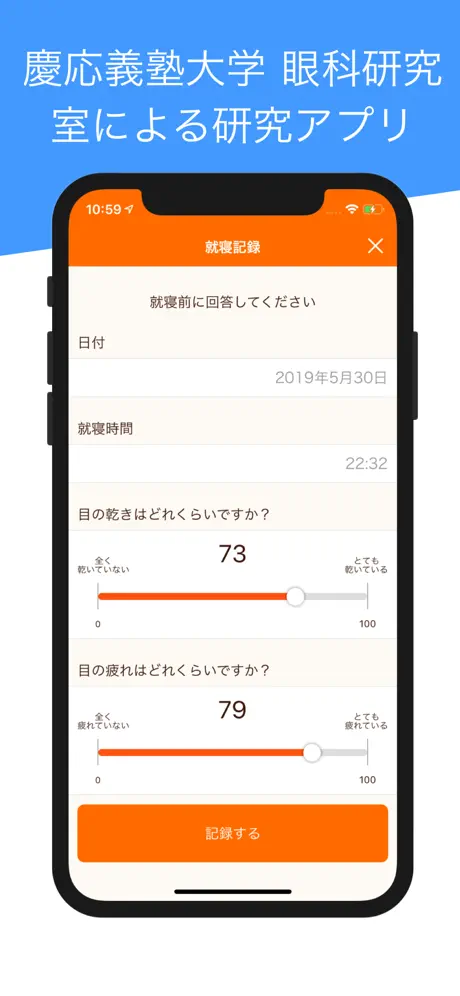 食べリズムは、慶應義塾大学医学部 眼科研究室との共同開発による、「食事のタイミング(体内時計・時間栄養学)に着目した研究アプリです。