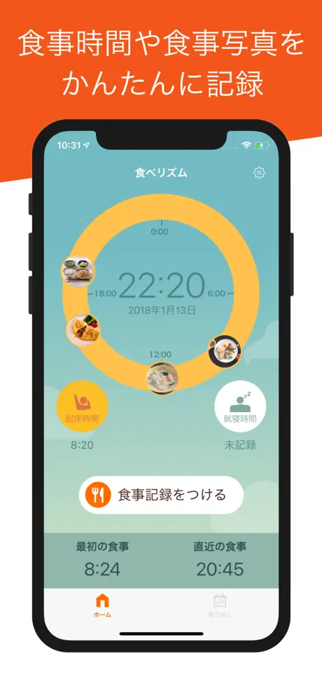 毎日の食事をスマートフォンのカメラで撮影し、食べた時間を記録することができます。