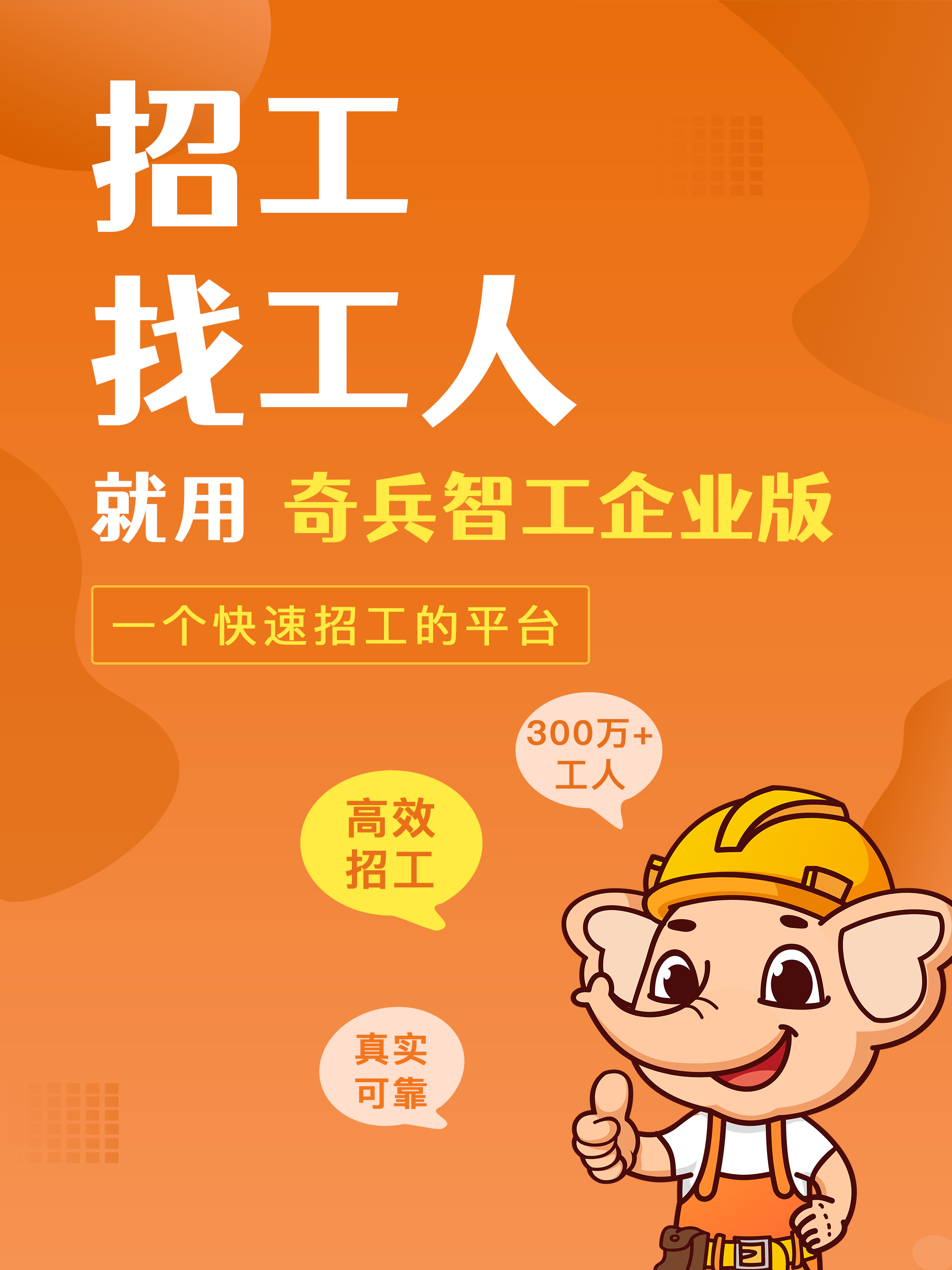 奇兵智工,全国有300万工人师傅在线的招工找工人的平台,找水电工、找维修工、找安装工、找管道工、找木工、找泥瓦工、找泥水工、找腻子工、找大白工、找贴砖工、找吊顶工、找装修工、找建筑工、找焊工、找货运司机、找快递员、找搬运工、找装卸工、找普工、找工人、找临时工、找师傅、找阿姨等多个工种的工人师傅都能找到,建筑公司、装修公司、劳务公司、包工头、班组长等在平台上发布招工找工人信息后2小时就能找到工人师傅,帮您彻底解决找工人难的问题。