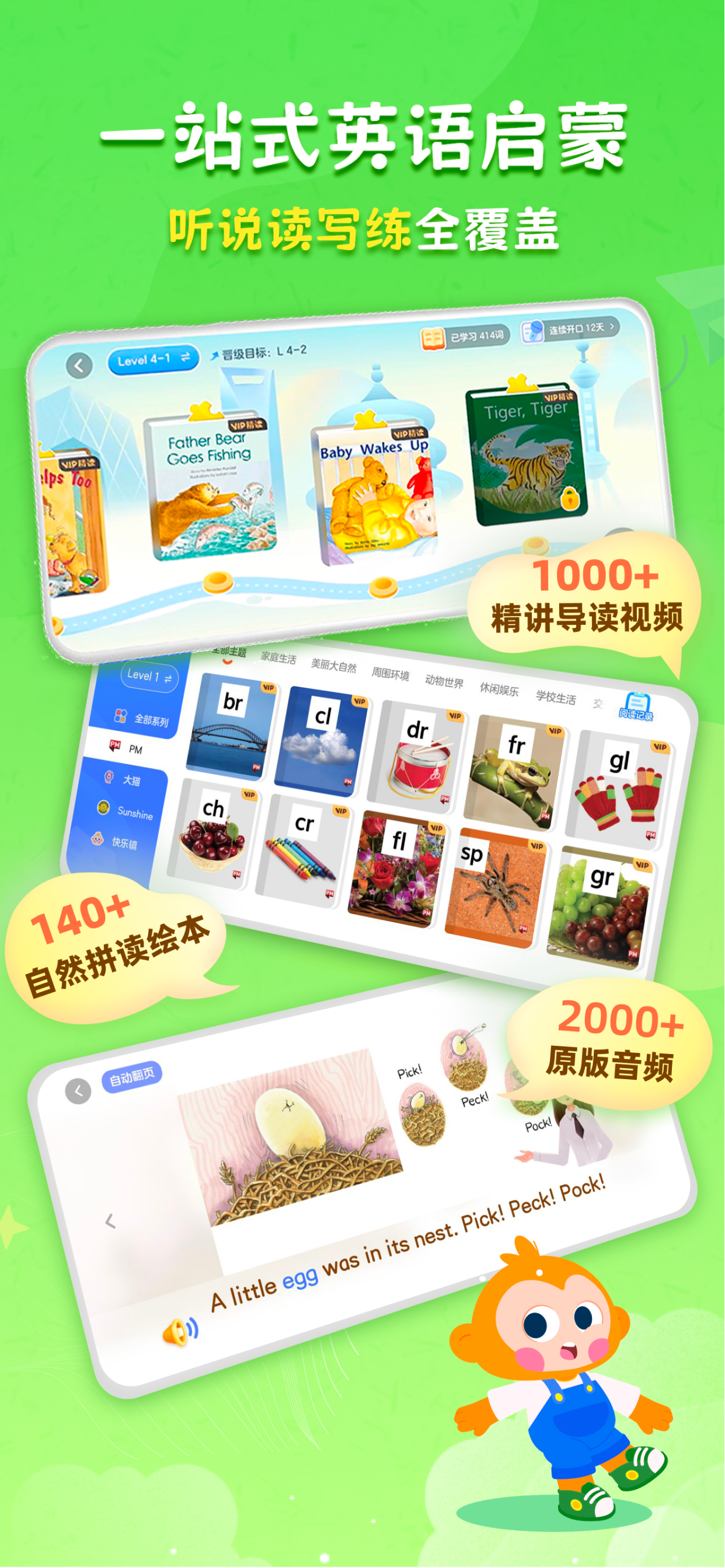 很不错的app,自从下载他,儿子读英语绘本的兴趣大大提高,而且英语阅读水平也是显著提高,很值得推荐