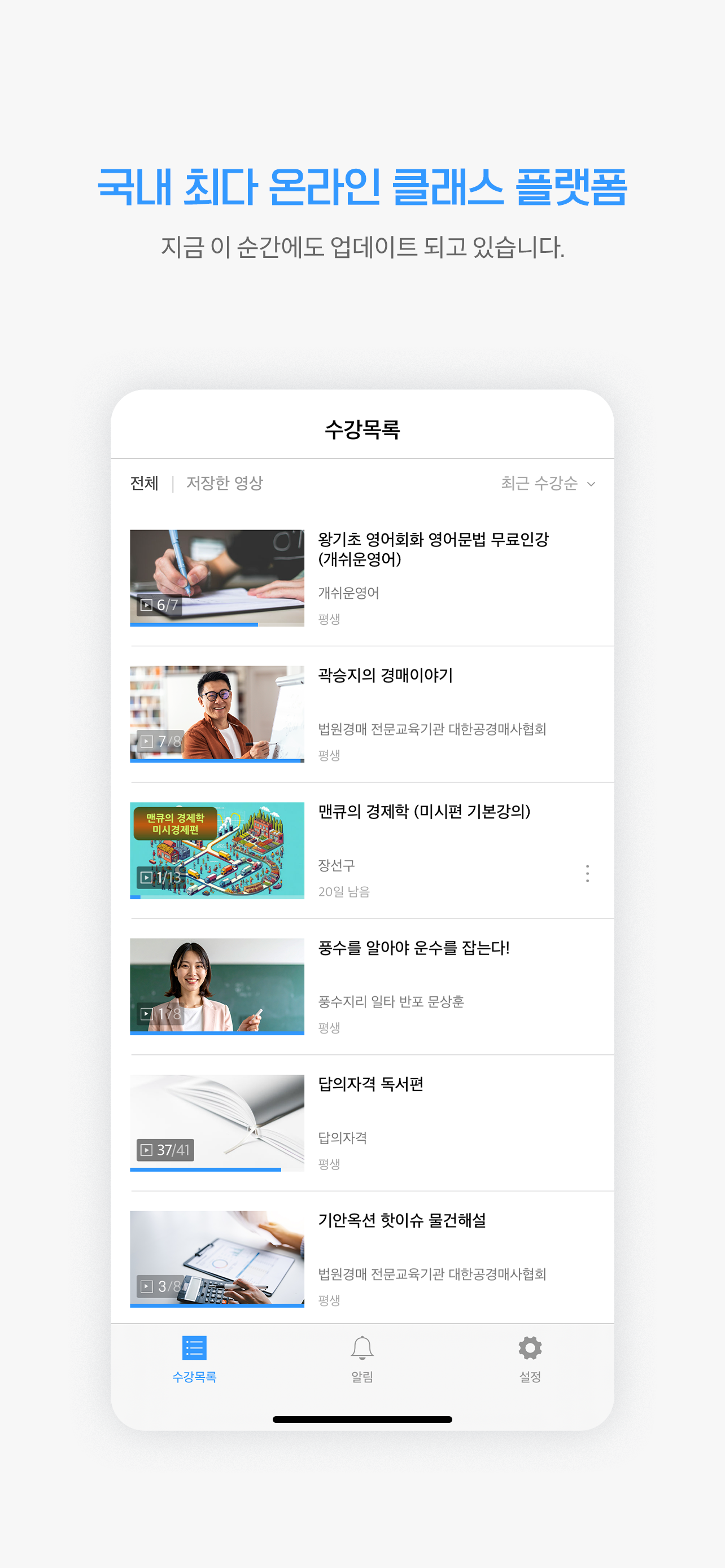 폰이나 테블릿으로 공부하시는분들 이거 동영상플레이어 진짜 최악입니다 그냥 강의만 팔아먹으려고 대충 만들었어요. 백그라운드도 최악이고 화면 회전도 원하는대로 못하게 되어있어요 왠만하면 다른업체꺼 사용하세요