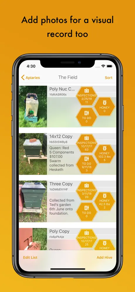 Add photos for a visual record too or use QR codes for quick hive id, share data with your beekeeping associates or export to spreadsheets and text files for printing, BeePlus is the hive tool for the modern beekeeper.