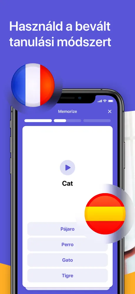 A BeLingual alkalmazással játszva bővítheted szókincsedet. Bevált tanítási technikákat alkalmaz, hogy könnyebben megjegyzed a szavakat.