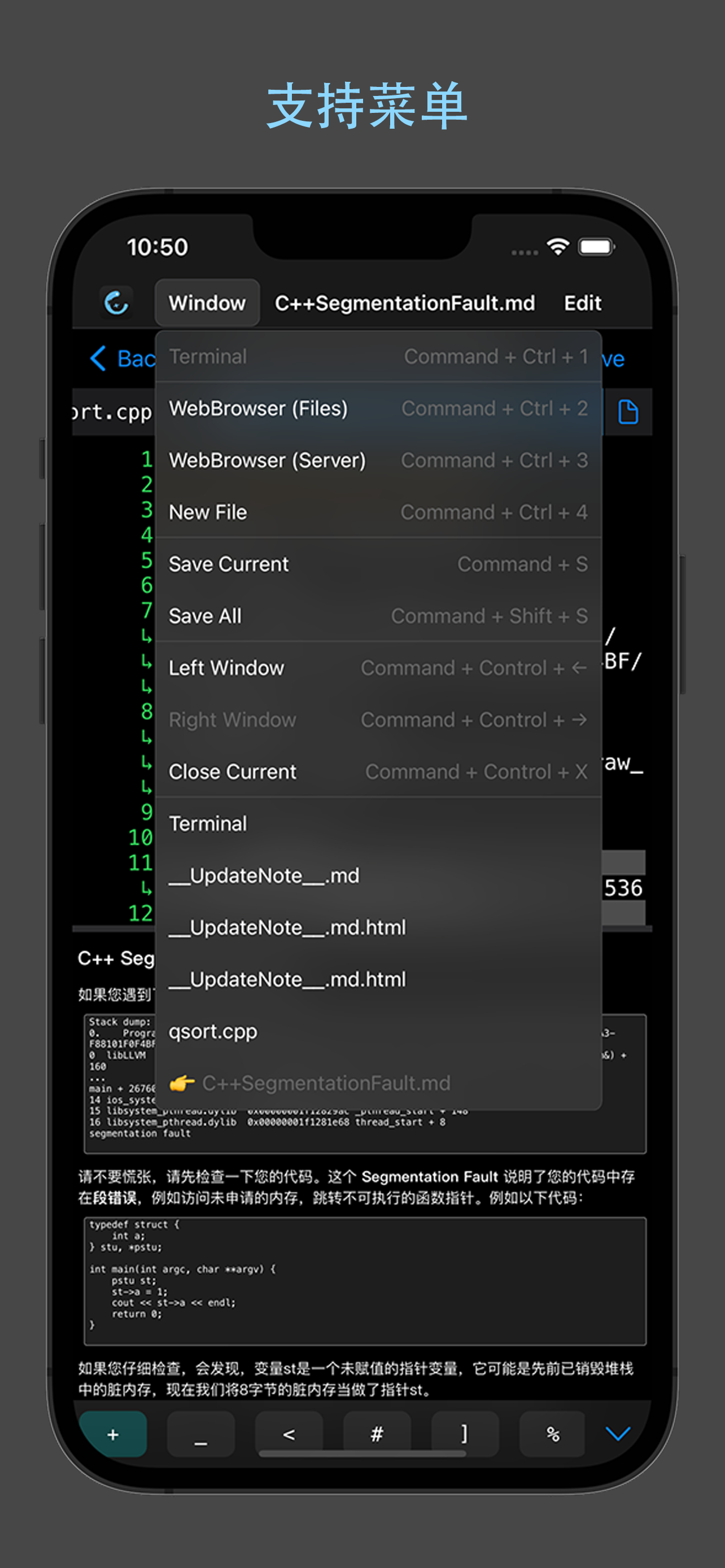 界面不错,这是我用这app的原因。初学c语言做点小练习就遇到很多问题。分屏基本不可用,一动就闪退。单窗口不闪退,但是同一个代码,一会编译成功一会失败。必须清理后台再打开,才能编译成功,给人的体验很不好,希望作者修复bug