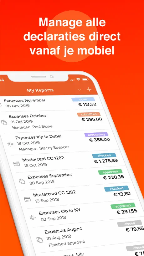 Een lastige manier van declareren. Omslachtig en veel keuzes. Declaratie, rapport, ingediend, niet ingediend. Maar ja waarom zou je een declaratie app ook makkelijk maken voor de werknemer?