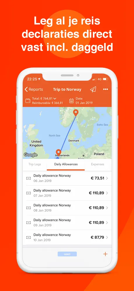 Niet intuitief … als declaratie hebt aangemaakt moet je nog een rapport aanmaken. Dat gaat niet makkelijk en vervolgens moet je het ook nog indienen en daar moet je ook voor gestudeerd hebben :-) Geen gebruiksvriendelijke app. Helaas.