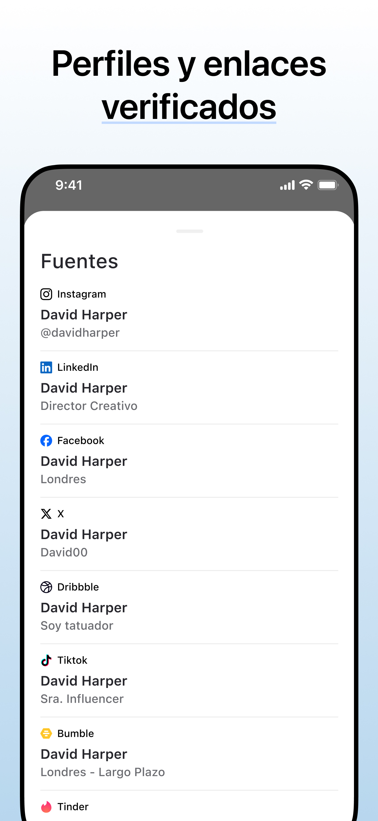 Amantes del networking – Ya sea en eventos de negocios o al conocer a alguien nuevo, encuentra su perfil en línea al instante.