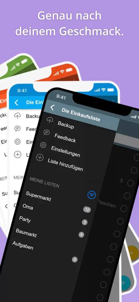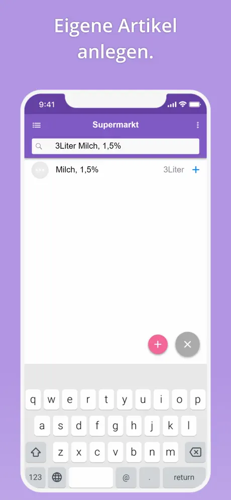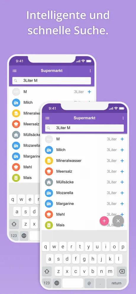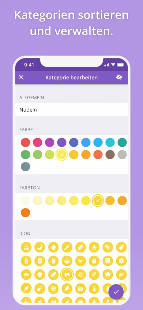 Durch 17 farbige Kategorien mit Icon und automatischer Sortierfunktion. Erstelle und verwalte bei Bedarf Deine eigenen Kategorien (auch für Baumarkt und ToDo Listen).
