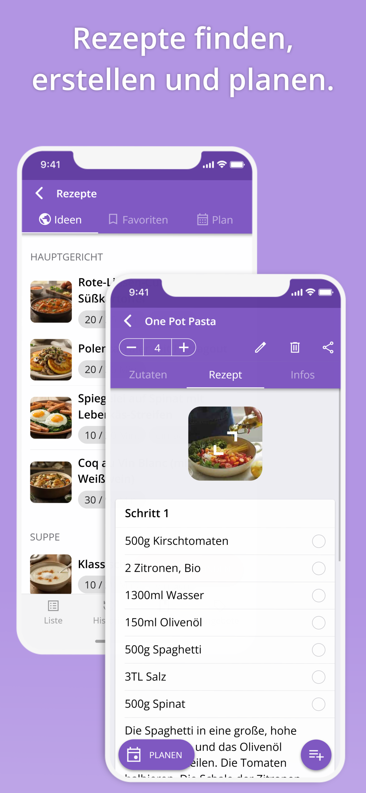 Verwalte Deine eigenen Rezepte und teile sie mit Familie oder Freunden - mit Zutatenimport.