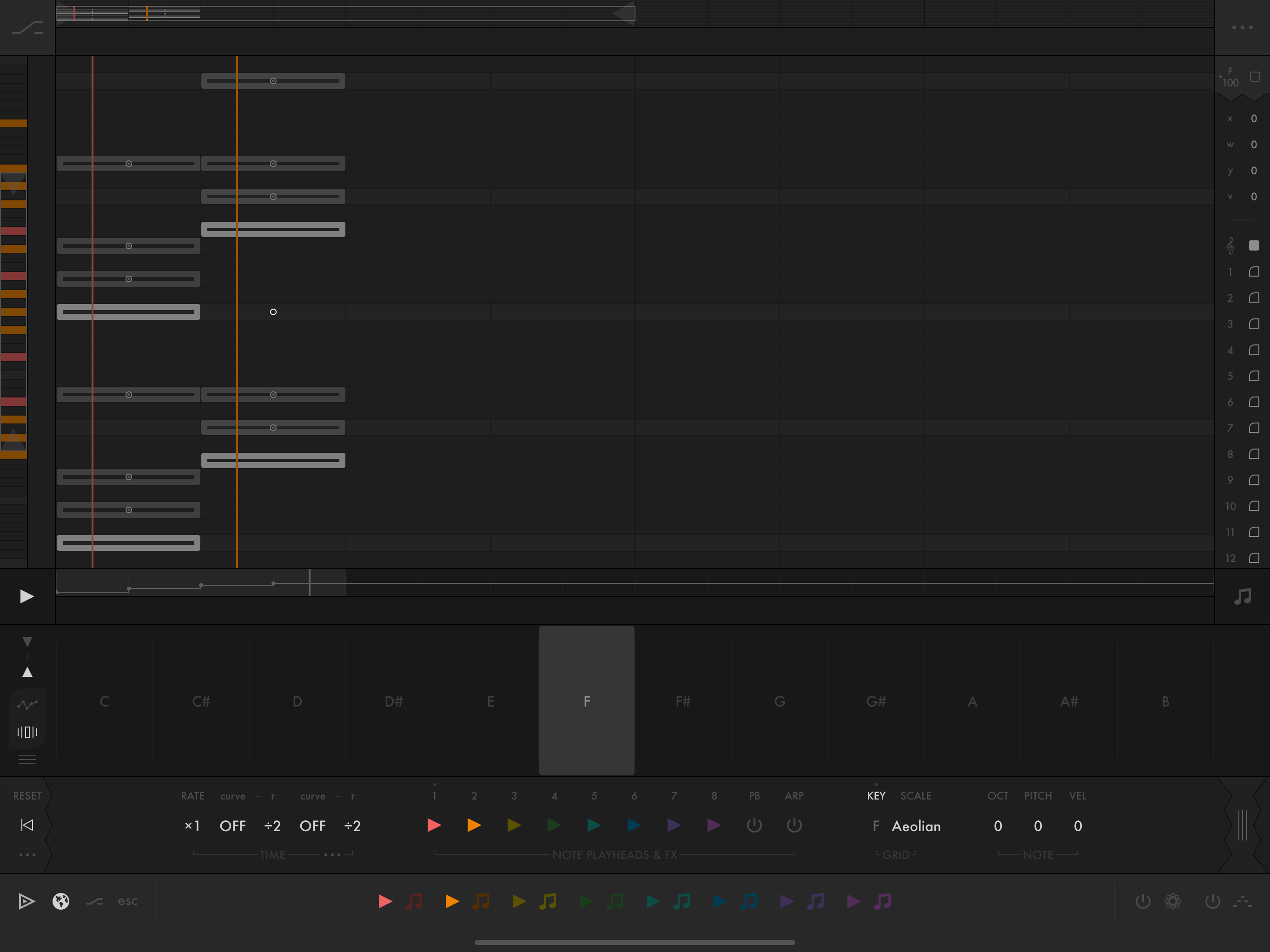 • Arpeggiate notes from multiple playheads