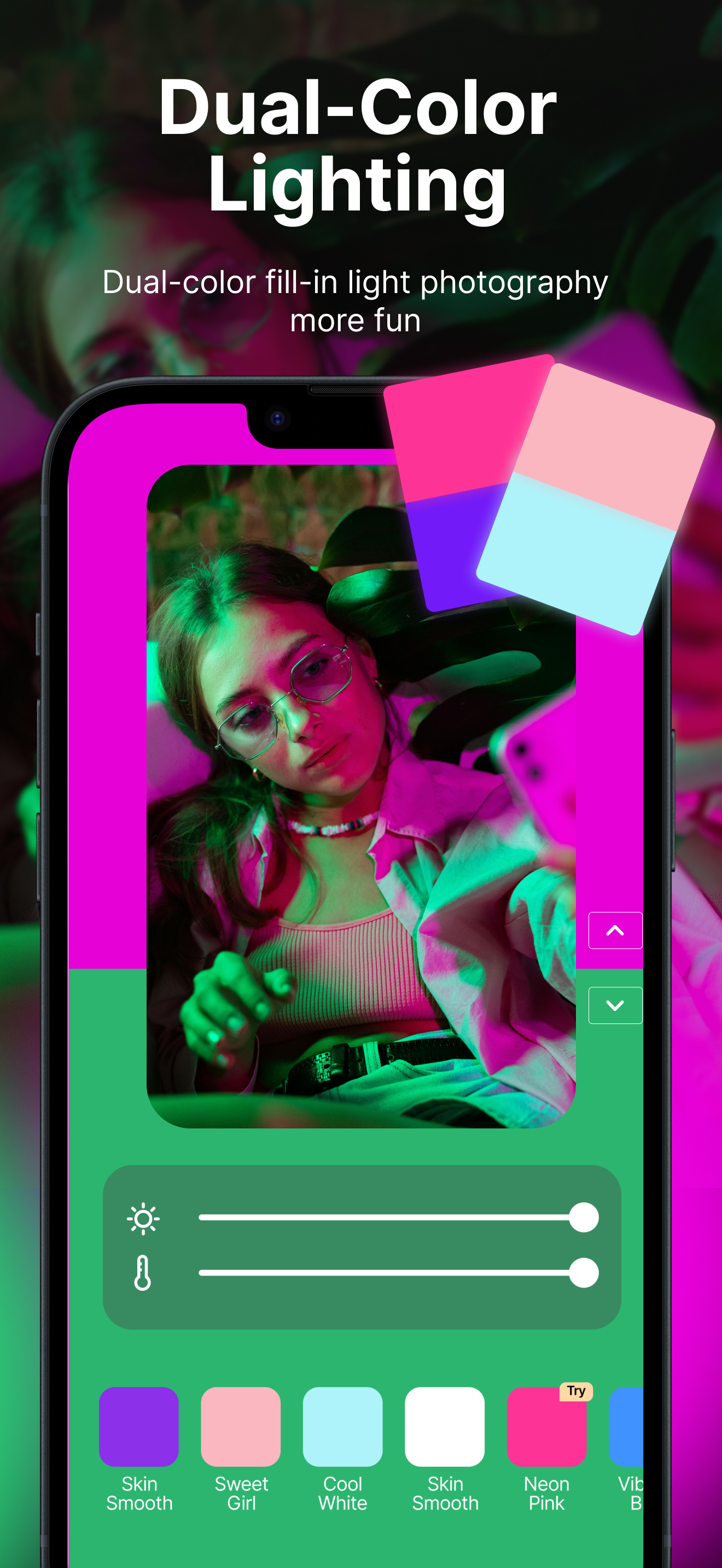 Turn your phone into a selfie light, ring light, and color screen light cam—all in one app!