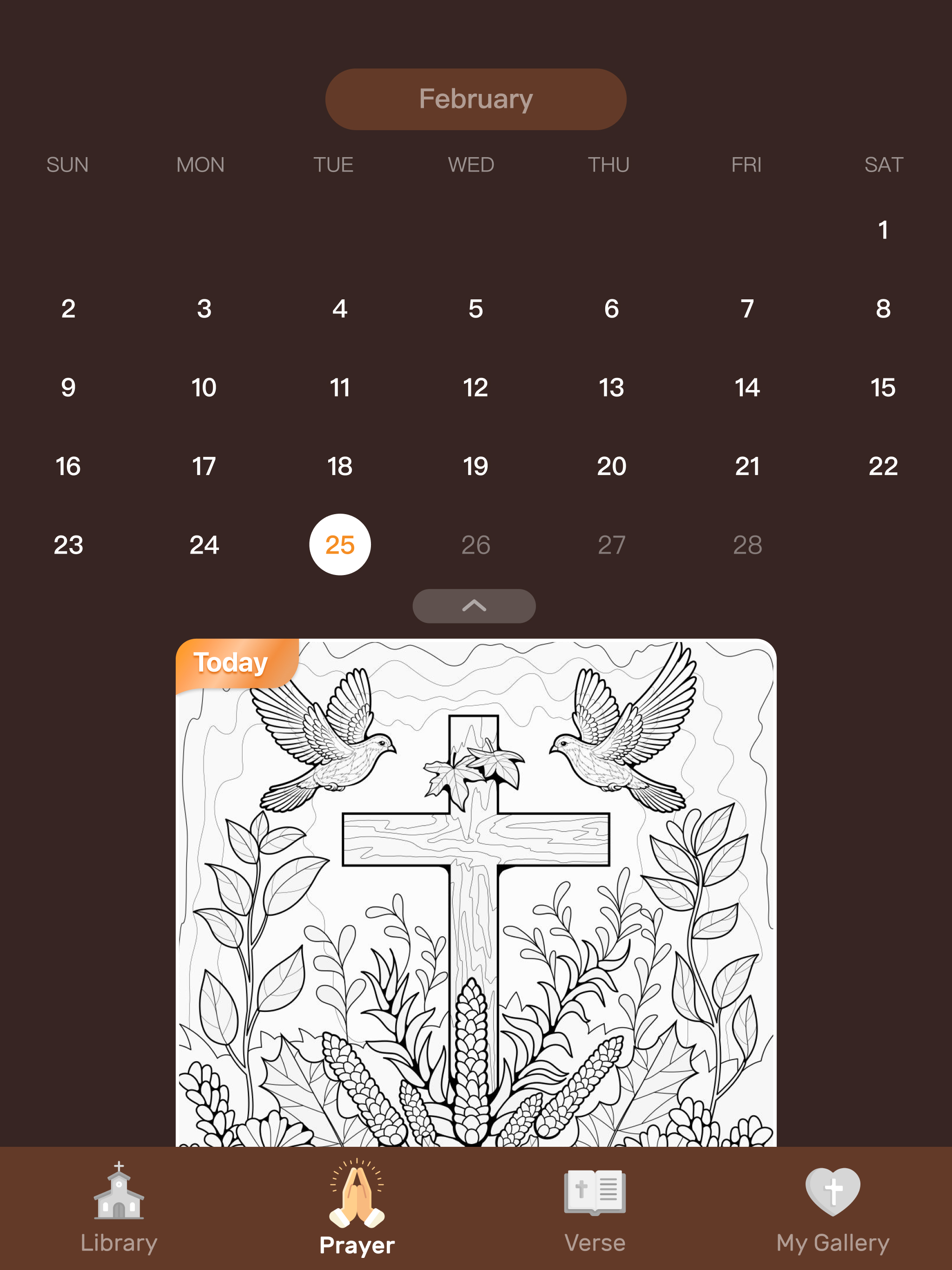 Start your day with a moment of reflection and devotion through our Daily Prayer feature. Each day, a new coloring image is unlocked, inviting you to spend a few peaceful moments filling it with color.This daily ritual is a perfect way to center your mind, express gratitude, and strengthen your spiritual journey.