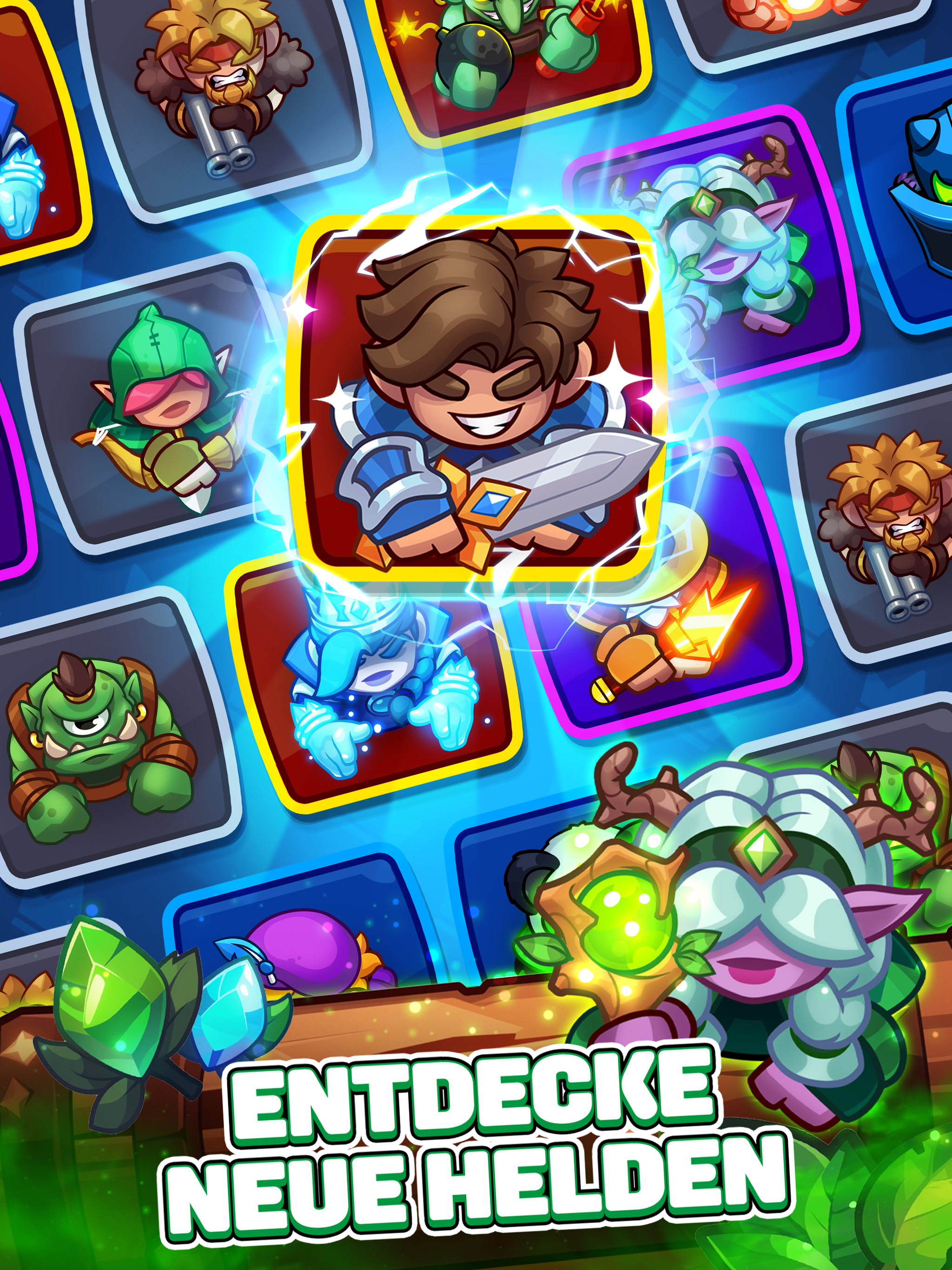 Es gibt keine schwächeren oder stärkeren Helden, nur einzigartige Charakterzüge und Fähigkeiten. Von den Fernangriffen des Dark Arrow bis zu den verheerenden Nahkampfangriffen von Hammerfury – es liegt an dir, eine Strategie zu entwickeln, um deine Gegner zu übertrumpfen, auszuspielen und zu besiegen!