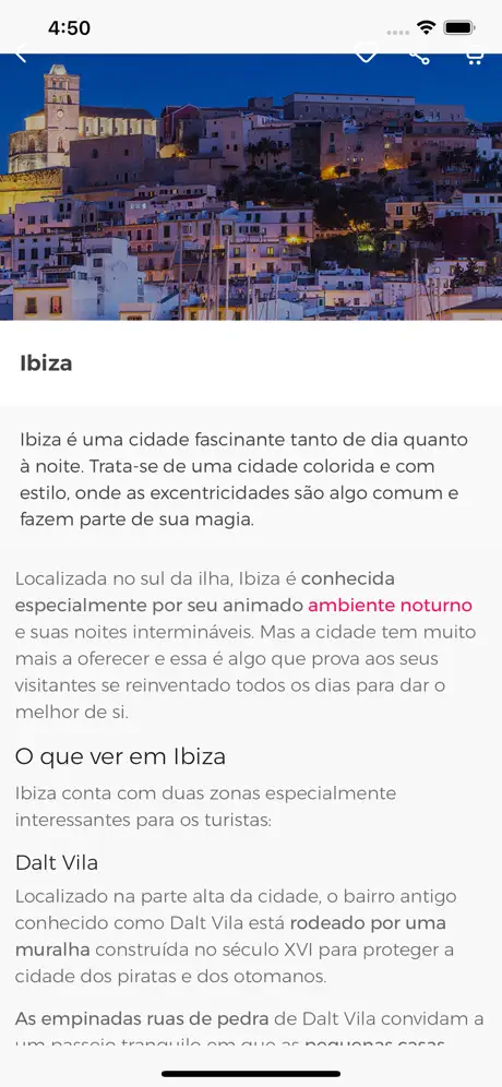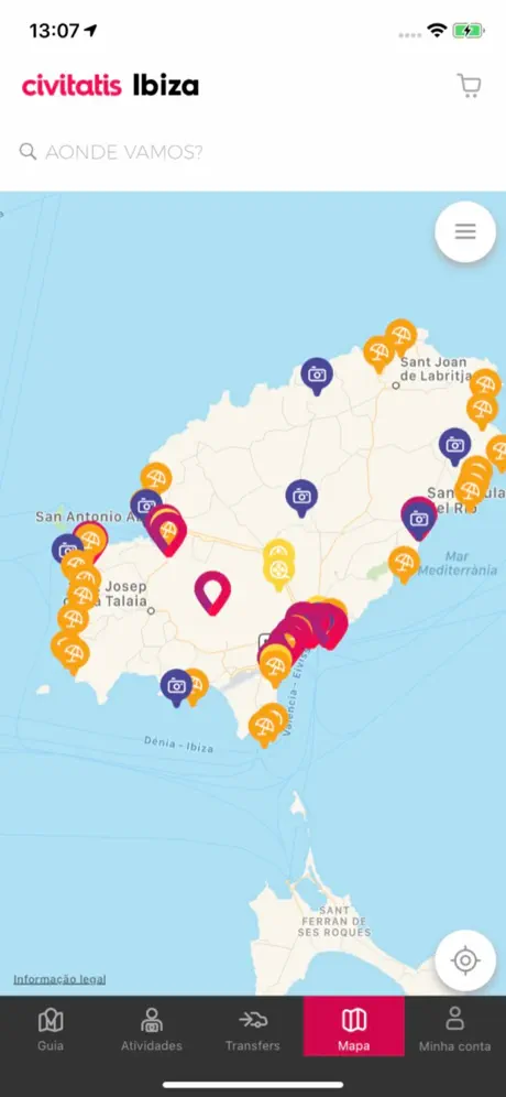 • Mapa: O mapa de Ibiza mais completo, onde poderá observar facilmente quais são os locais a visitar que são imprescindíveis, onde comer, a melhor zona para reservar o seu hotel ou o bairro com a maior oferta de lazer de Ibiza