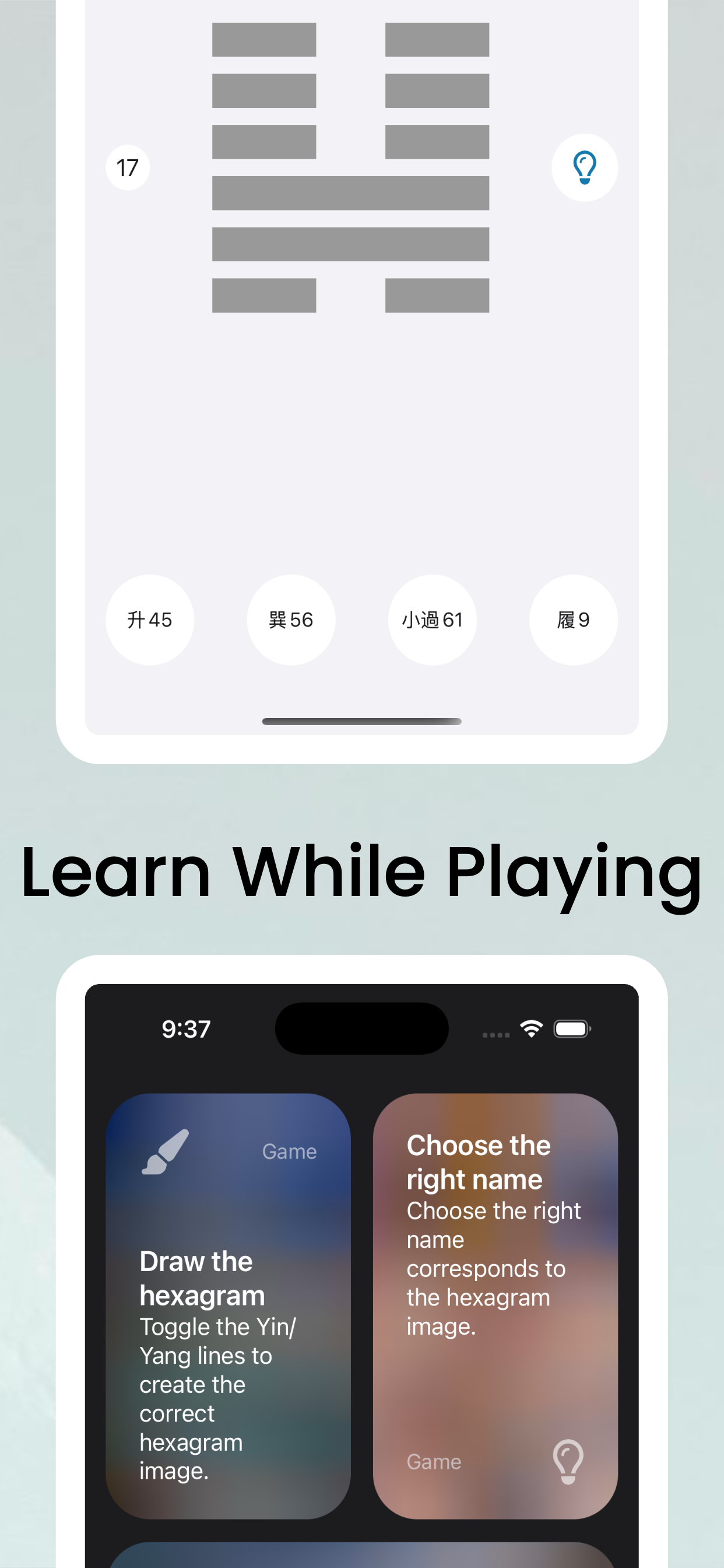 * Interactive games like drawing hexagrams and guessing hexagram names to deepen your memory of the 64 hexagrams.