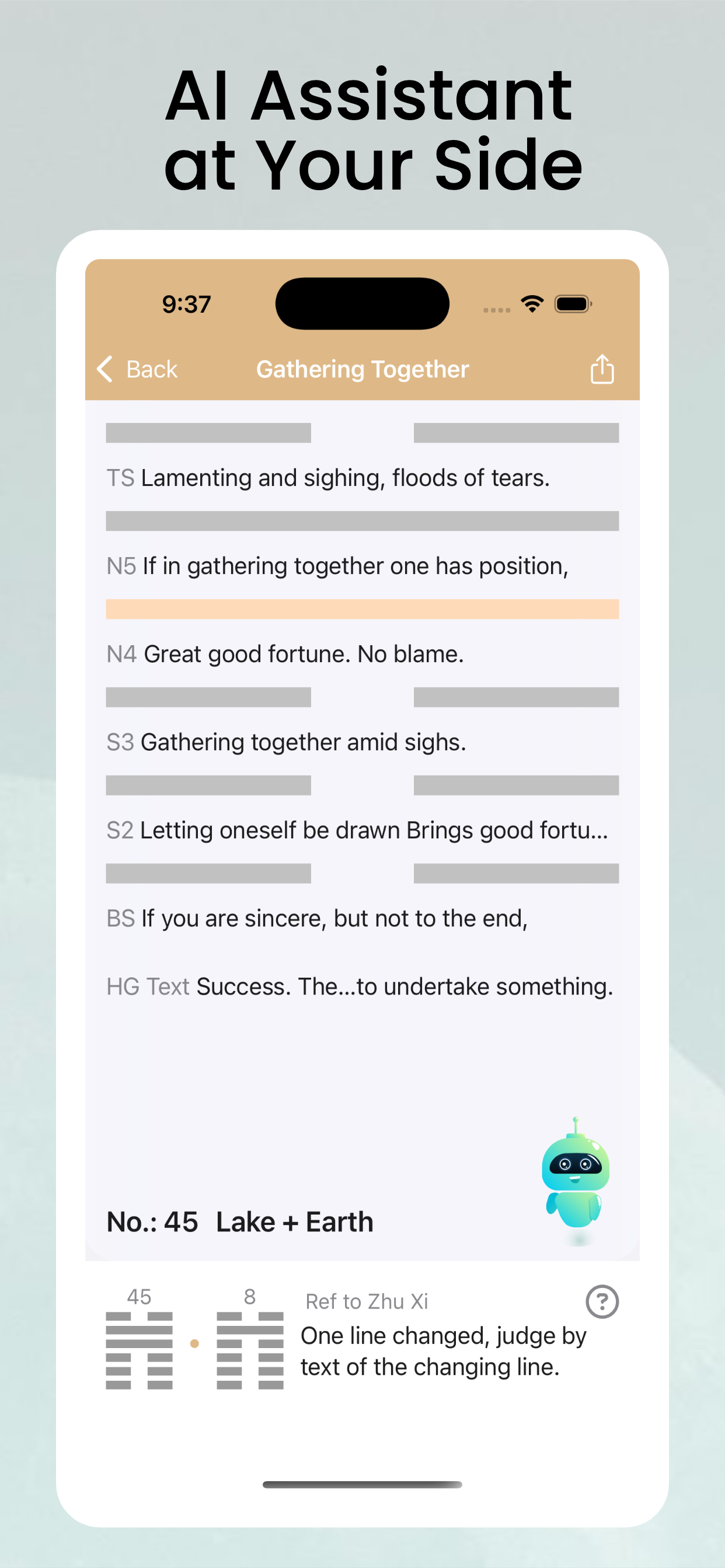 * Built-in AI I Ching assistant quietly stands by to help you understand hexagrams, perceive changing trends, and provide supporting information.