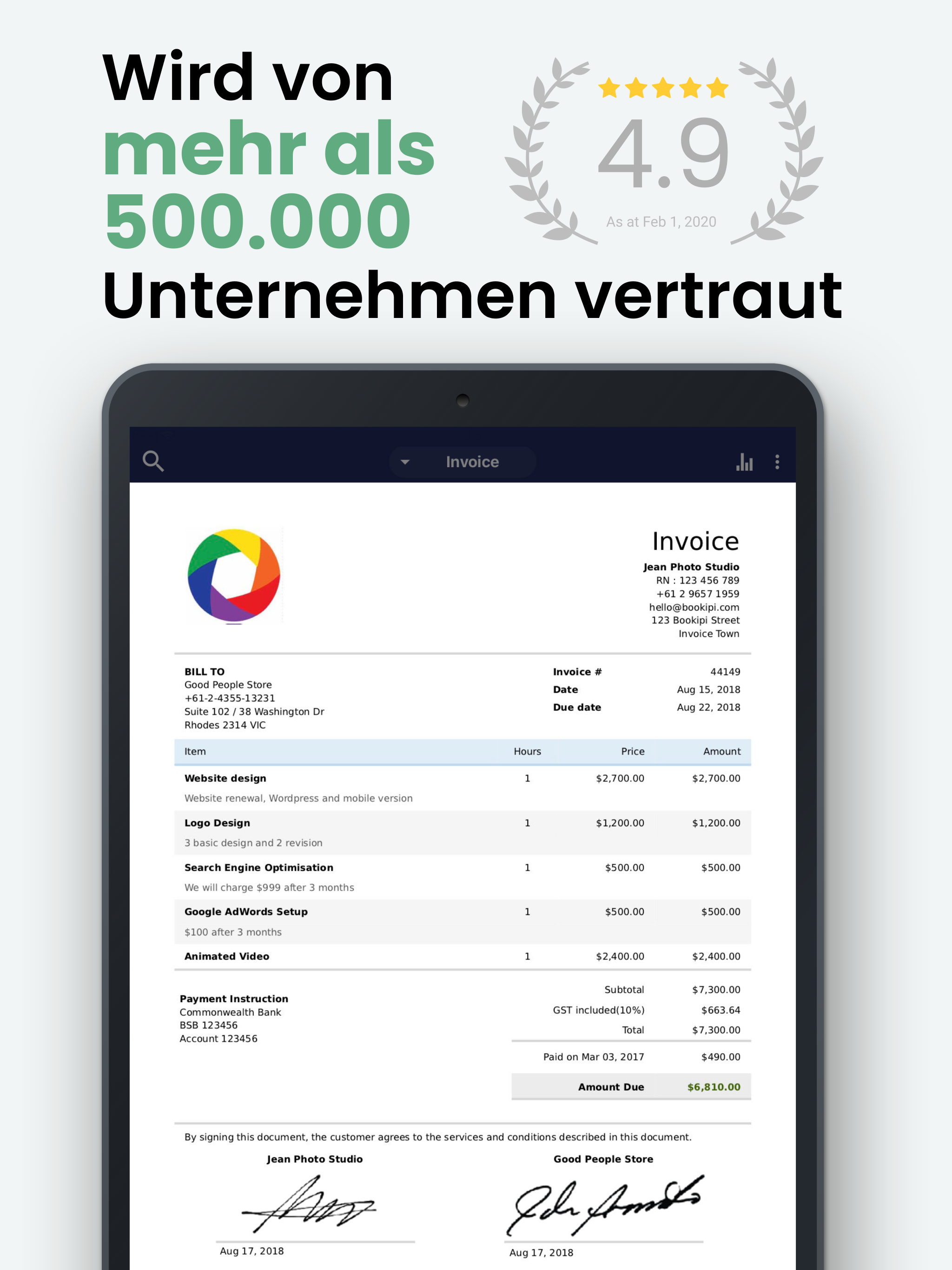 Von Beginn meiner Selbstständigkeit an habe ich Invoice genutzt, um Rechnungen zu schreiben und zu verschicken. Die ganze Zeit über war ich rundum zufrieden - obgleich ich nicht wirklich eine Alternative hatte: Es gab dato KEINE andere, kostenlose Rechnungsapp ohne "versteckte" Testlaufzeit im Appstore! Leider muss ich feststellen, dass ich in meiner Gründungsphase wohl am GANZ falschen Ende gespart habe! Denn: Seit dem letzten "Verbesserungs"-Update vor 5 Tagen schließt sich die App unmittelbar nach dem Öffnen wieder! Ich hielt das erst für ein vorübergehendes Problem und vertraute darauf, dass die Entwickler diesen Bug schnellstmöglich fixen würden! Immerhin geht es hier um Existenzen! Es drohen Einkommensverluste und Probleme mit dem Finanzamt, wenn keine Rechnungen erstellt werden! Für mich als hauptberuflich Selbstständige, die TÄGKICH Rechnungen schreiben muss, ist das gerade der finanzielle und organisatorische Supergau! Sollte dieser Zustand in den nächsten Tagen (bis SPÄTESTENS Ende kommender Woche!) nicht behoben sein, werde ich juristisch prüfen lassen, ob ein Schadensersatzanspruch geltend gemacht werden kann! FINGER WEG VON DIESER APP!