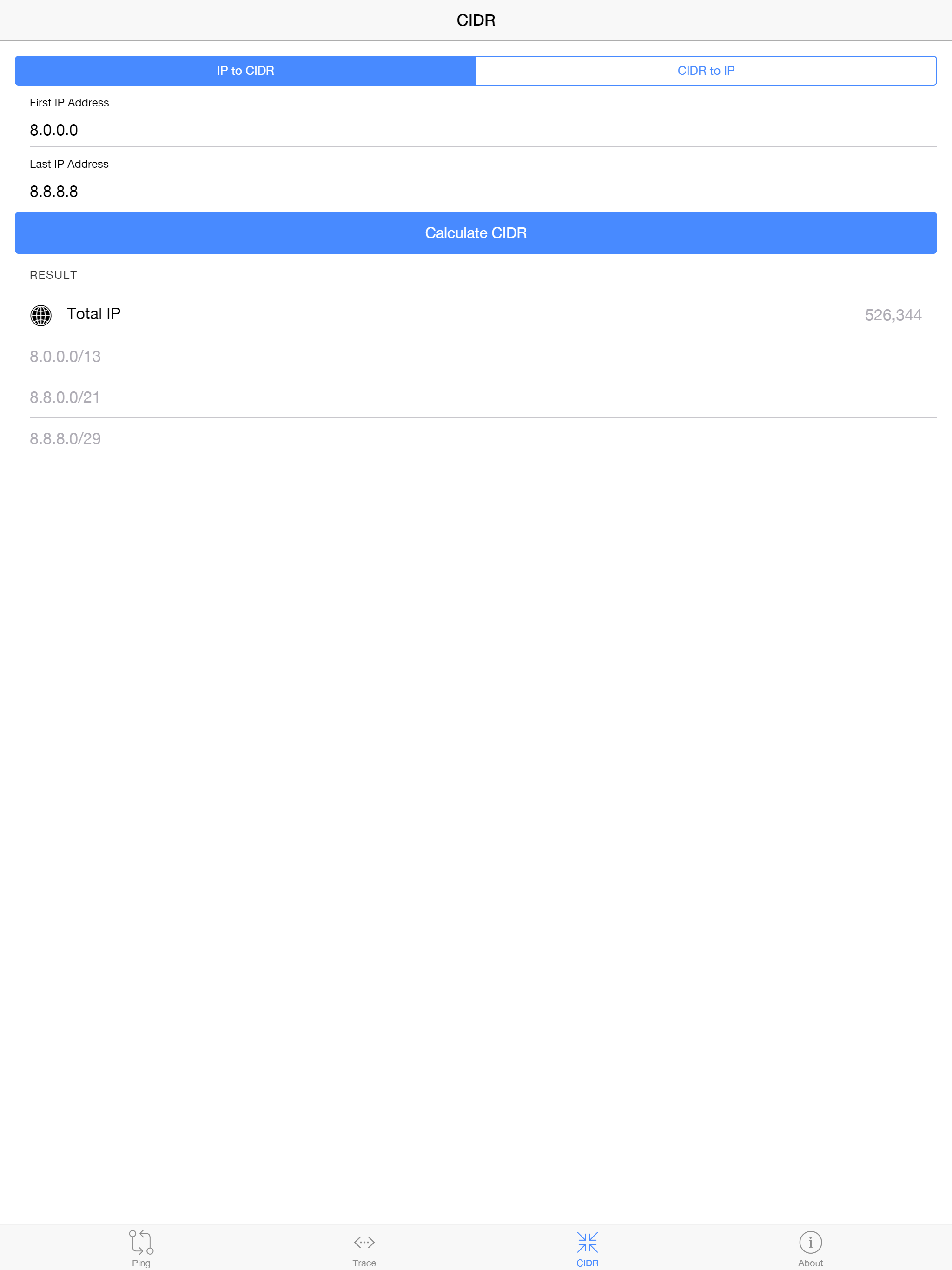 description: "IP Tools app enables mobile users to ping or to traceroute IP address from multiple locations via LocaProxy’s nodes. In additions, it also equipped with handy CIDR calculator to help network administr"