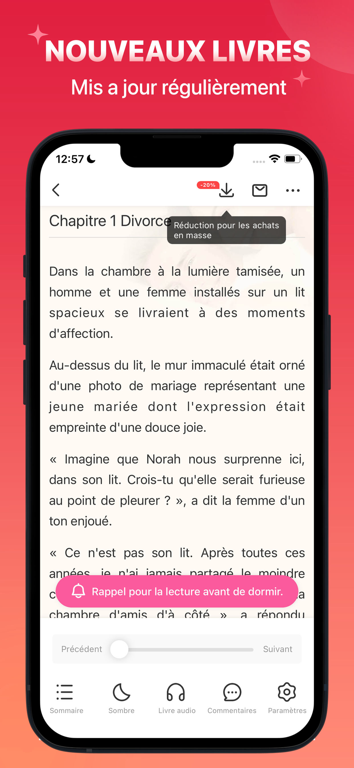 Depuis que j ai téléchargé l application, je suis très satisfaite Les romans sont très lisibles Des bons titres à lire Je vous encourage à Télécharger l’application