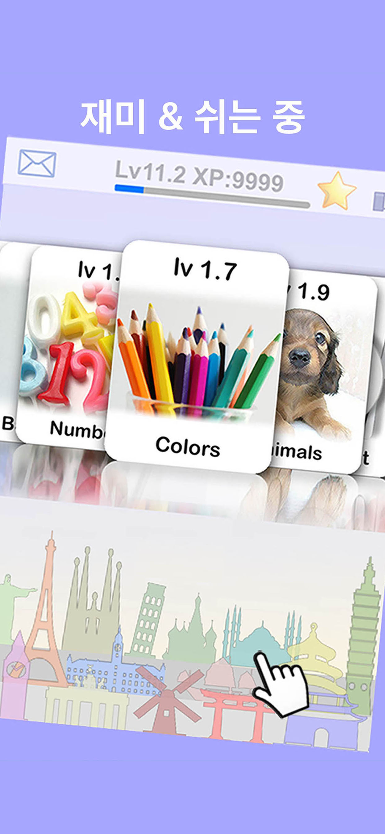카드놀이를 통해 포인트를 쌓고 레벨 업을 하면 새로운 카드를 무료로 받으실 수 있습니다! 게임하듯 재밌게 배워봐요!