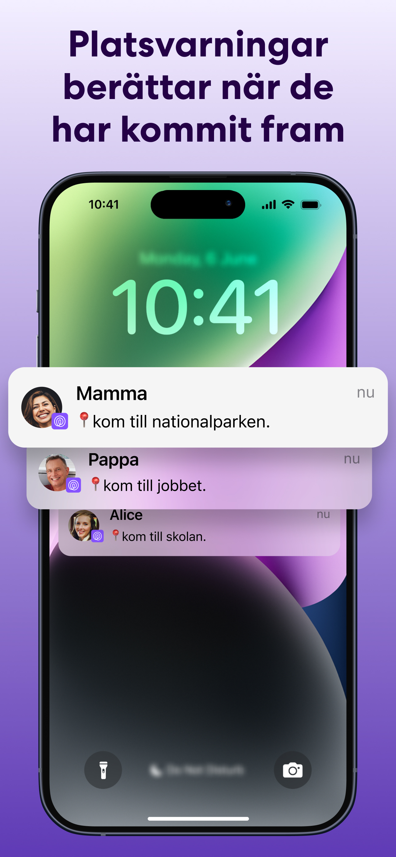 Platsvarningar: Se när dina vänner och din familj kommer hem från skolan, lämnar jobbet eller börjar värma upp på träningen. Platsvarningar håller koll åt dig när du är upptagen.