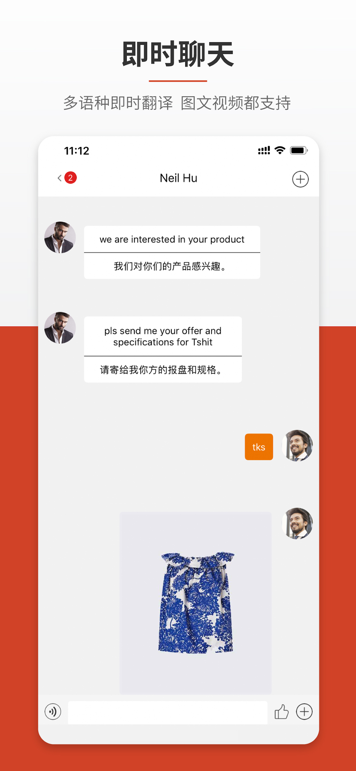 内嵌AI即时翻译,接受消息与发送消息时,支持15种语言的实时互译,让你更容易的开拓别人做不了的小语种市场。