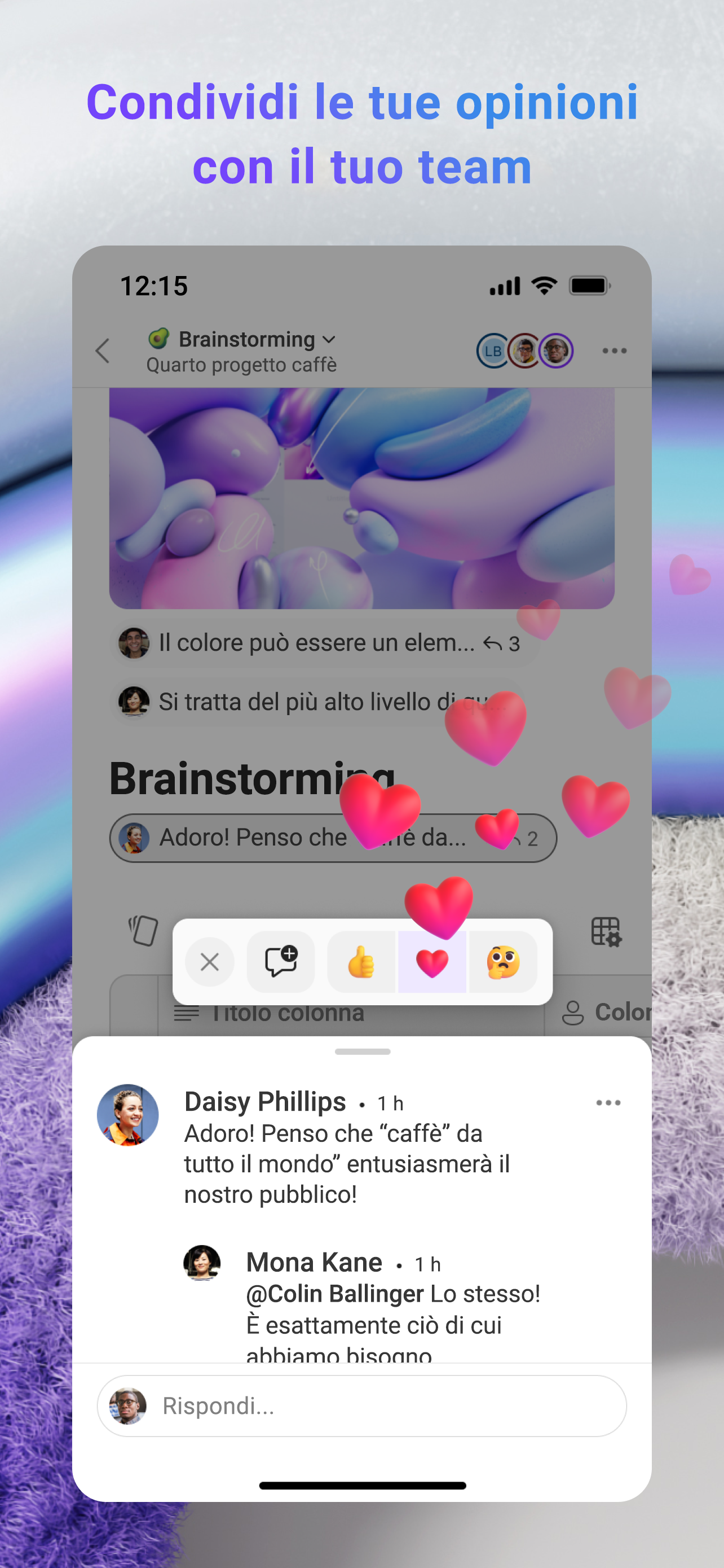 • Commenta e reagisci nell'app per collaborare rapidamente ovunque ti trovi.