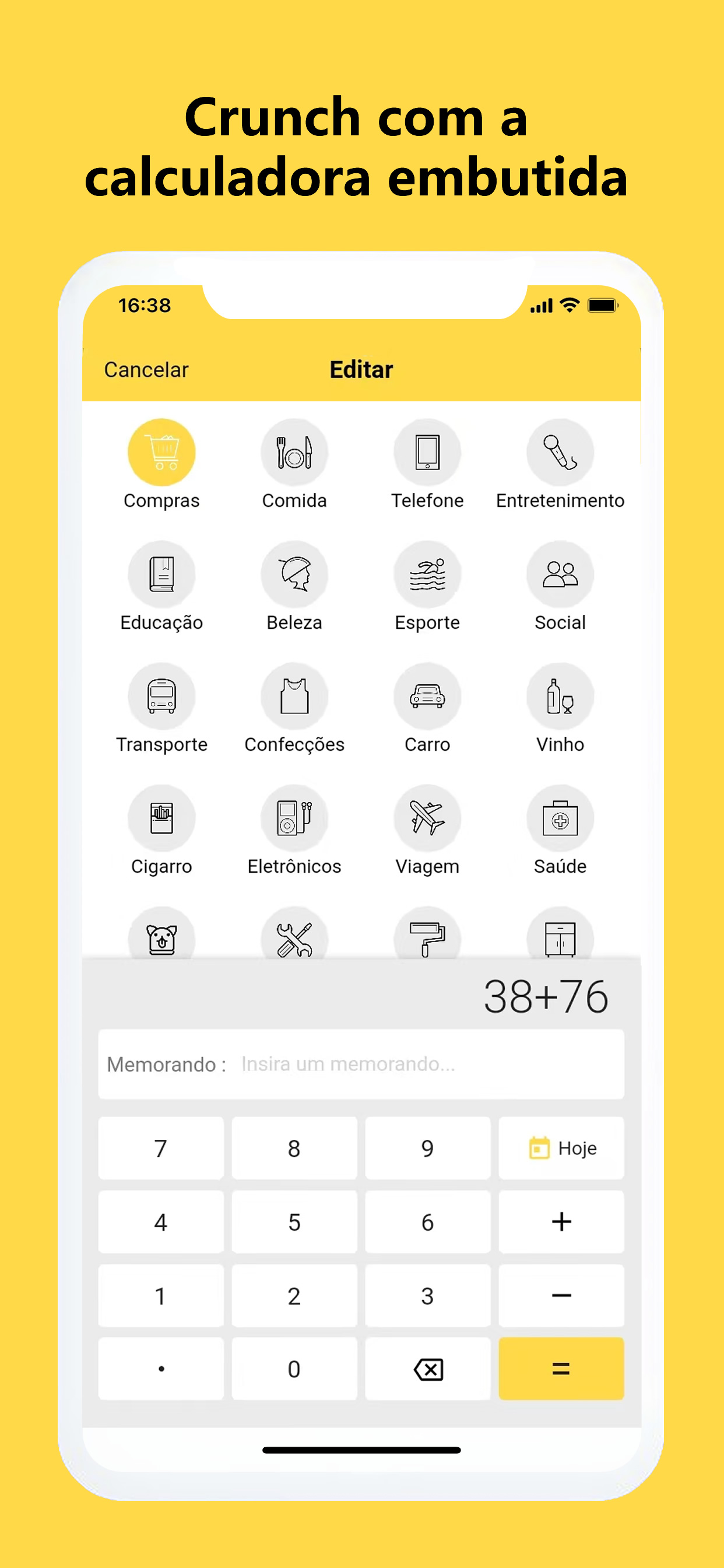Use modelos prontos (como despesas como mercearia, hobby, contas de serviços públicos, etc.) ou crie suas próprias categorias, escolha qualquer cor e configure o aplicativo como achar melhor para obter o máximo dele;