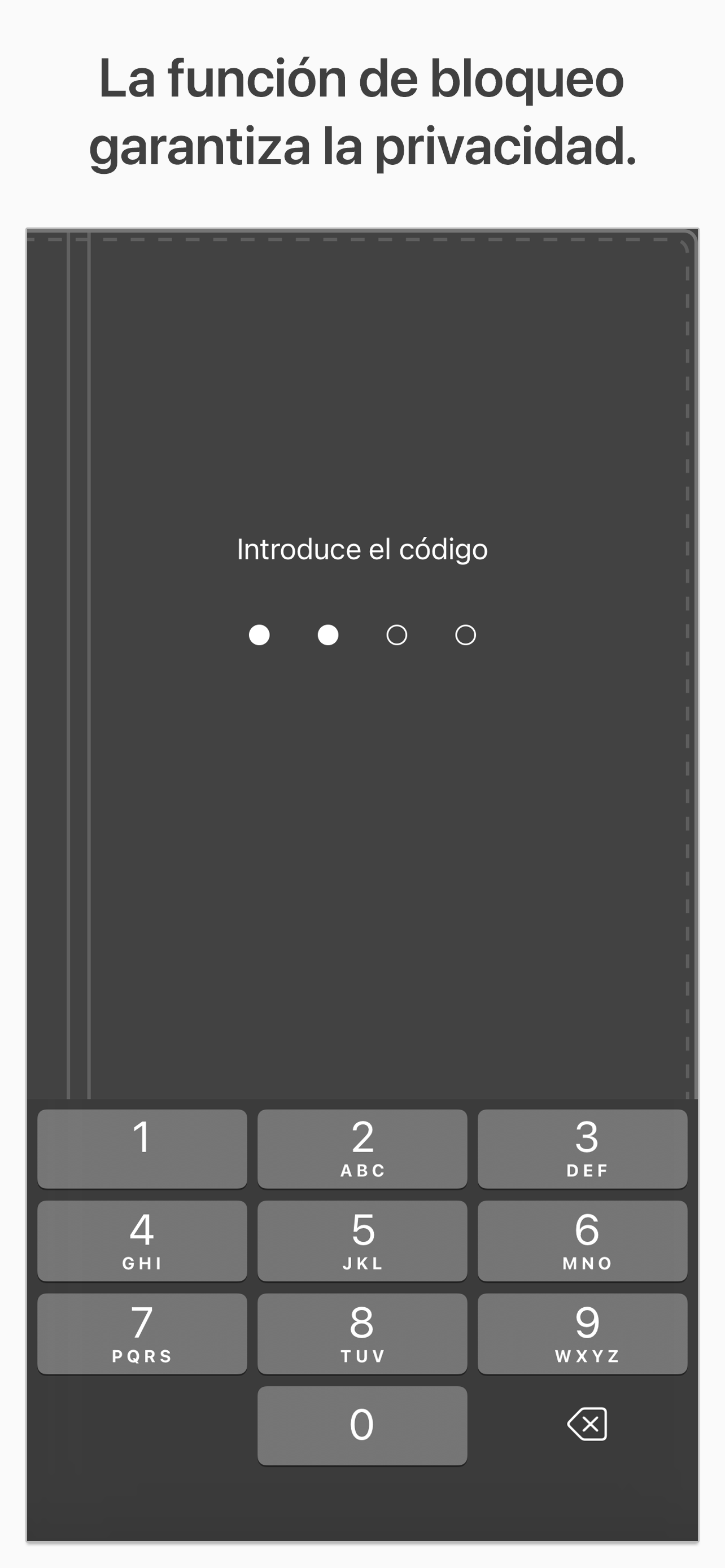 - Bloqueo con contraseña (compatible con FaceID y TouchID)