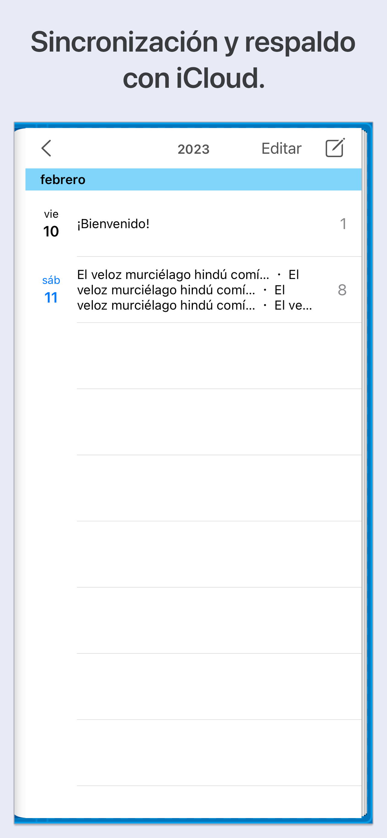 - Función de sincronización con iCloud