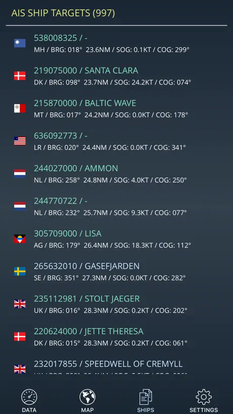 - List of all surrounding AIS vessels sorted by distance