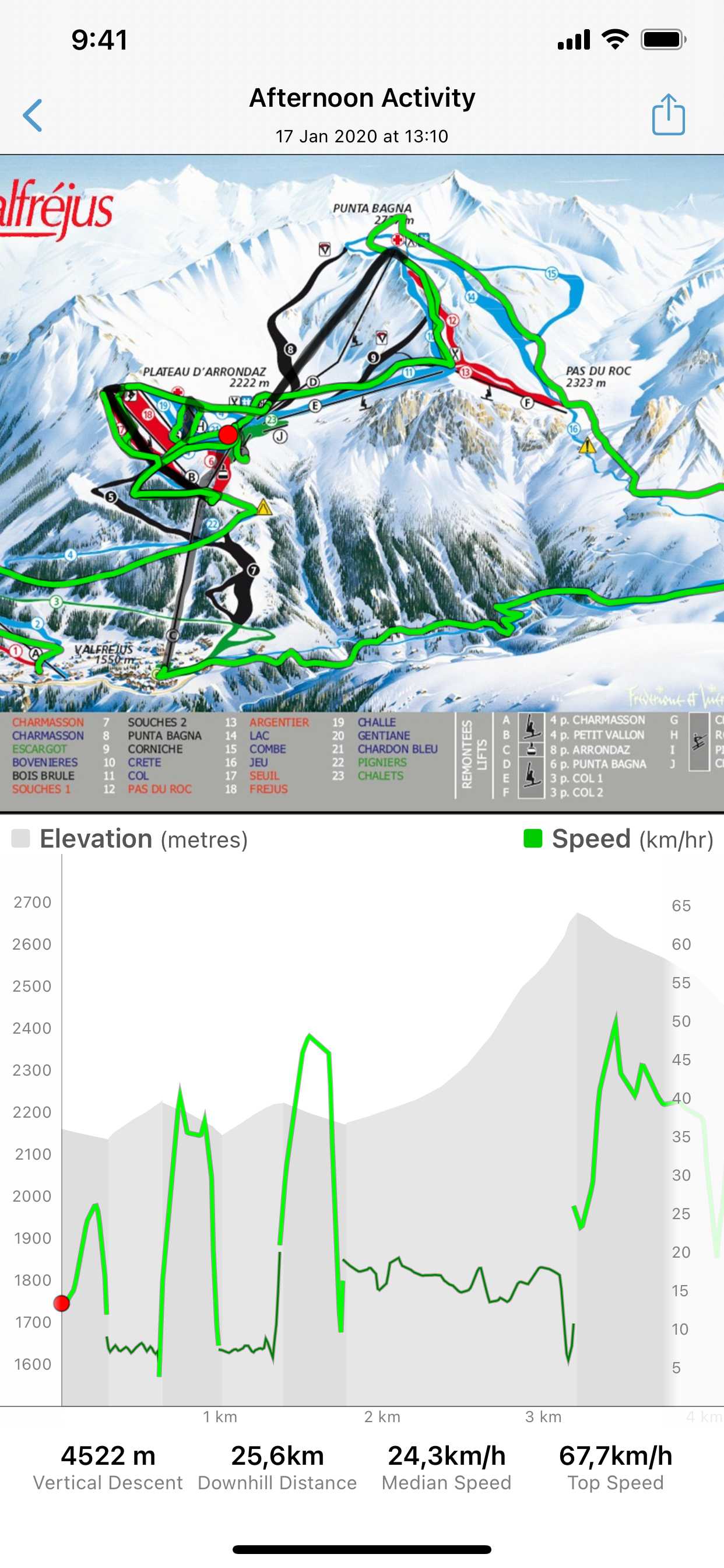 Тестил в Мерибеле. Работает без интернета если заранее скачать нужную карту. Определяет местонахождение точно секунд через 5. Отлично пишет спуск, все запоминает, рисует график. Да, иногда не точно показывает трассы, но незначительно. В принципе можно обойтись без бумажных карт.