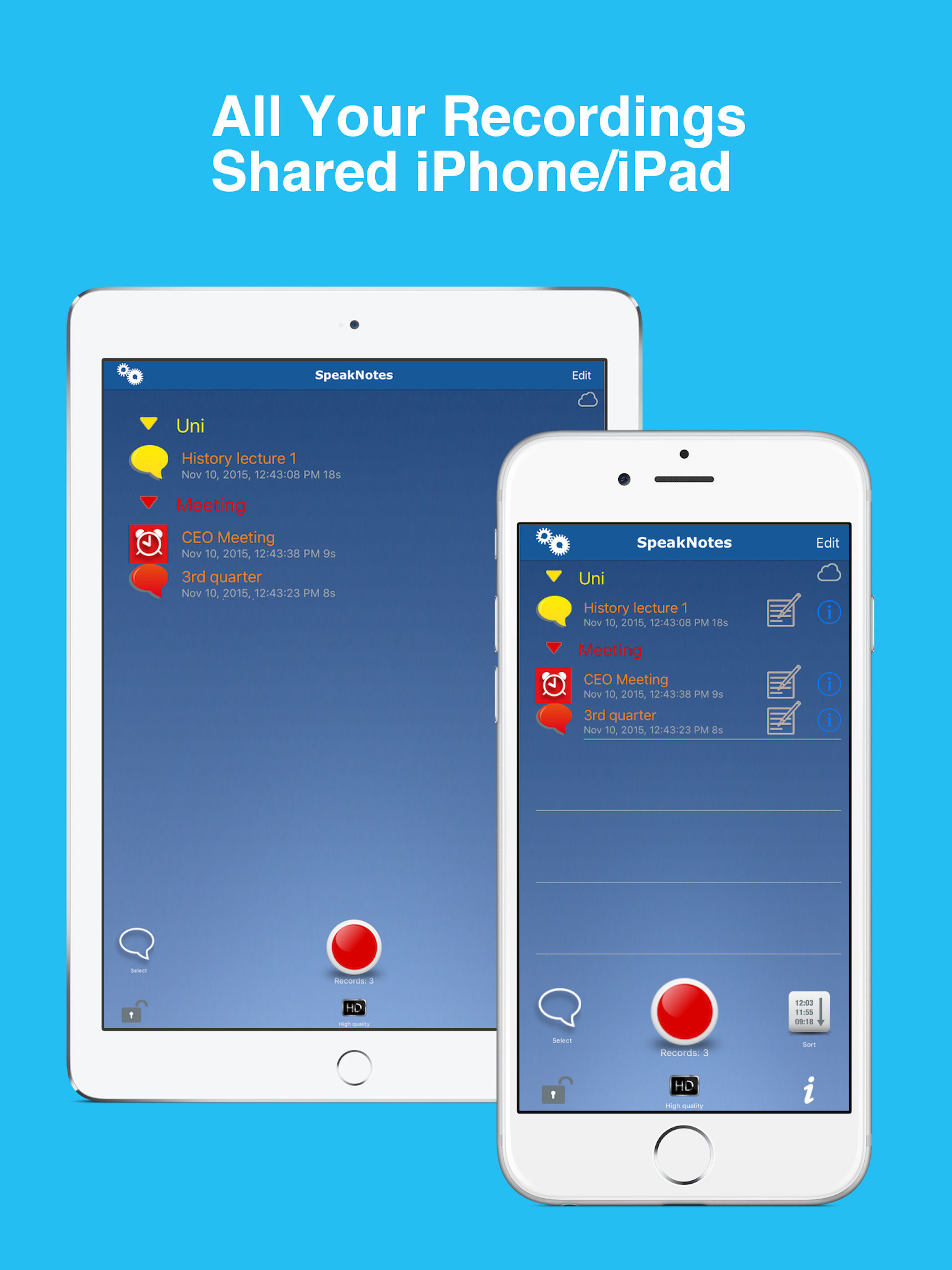 Share all your recordings with all your iOS devices using iCloud support